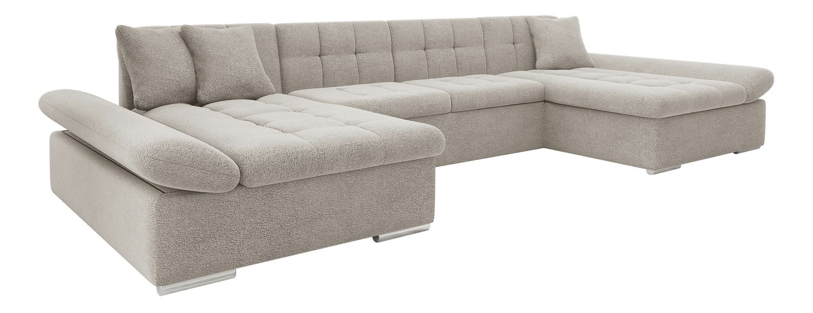 ZobrazitRozkládací rohová sedačka je ideální volbou pro ty, kdo hledají pohodlí a styl. Kdo by nesnil o tom, že si po náročném dni bude moci natáhnout nohy na pohodlné rohové pohovce? Nebo abys večer mohl sednout v širší skupině přátel bez obav, že si navzájem narazí lokty? Rohová pohovka Agata s funkcí spaní tato očekávání splňuje. Tato moderní rohová pohovka jistě osloví milovníky netradiční elegance ve skutečně hollywoodském stylu. Její zajímavá forma osvěží zařízení interiéru a zajistí, aby si celý obývací pokoj zachoval jednotný styl. Rohová pohovka typu „U“ zaručuje pocit pohodlí, komfortu a relaxu během rodinného volného času i během setkání s přáteli. Takový tvar prostě musí být v interiéru vystaven! Prostorná rohová pohovka zaujme každého v domě. Bude také skvělým prostorem pro dětské hry – vaše děti si mohou postavit domeček z přiložených polštářů, zatímco vy si budete užívat nerušeného odpočinku ve druhé části nábytku a zároveň dohlížet na jejich bezpečnost. Čalouněné opěradlo je pevně připevněno. Nastavitelné područky vám usnadní nastavení nejpohodlnější opory. Konstrukce sedáku bude mít zase pozitivní vliv na vyrovnání jednotlivých segmentů páteře, čímž vám poskytne zdravé podmínky pro relaxaci. Po rozložení dosahuje rohová sedačka s funkcí spaní nadprůměrné plochy na spaní, která vám poskytne každodenní komfort a vašim hostům pohodlný spánek. Díky dvěma kontejnerům na lůžkoviny získáte další, diskrétní úložný prostor pro sezónní oblečení a vzácně používané doplňky. Měkké tvary rohové pohovky se nabízí v pozoruhodných barvách. Široký výběr barev umožňuje snadno zvýraznit kvalitu vašeho interiéru. Zadní část čalouněná látkou vám navíc dává možnost umístit nábytek libovolným způsobem – i v centrální části obývacího pokoje bude vypadat velmi dobře. Chromované přední nohy dodávají nábytku jemný šarm a zároveň dodávají zařízení jemný nádech modernosti. Díky použití vysoce kvalitních komponentů se rozkládací rohová pohovka bude dlouho těšit své spolehlivosti a odolnosti. Rozměry: délka: 360 cm, šířka: 160 cm, výška: 75 cm, plocha na spaní: 360 x 130 cm Rozměry úložného prostoru (dva kusy): délka: 147 cm, šířka: 73 cm, výška: 23 cm, a délka: 147 cm, šířka: 7 si zákazník vybere při montáži) Provedení: konstrukce sedadla: dřevěný rám + pružina + plst + pěna T2844 (10 cm) + čalounická vatovitá tkanina, konstrukce opěradla: dřevěný rám + gumový pás + pěna T2844 (5 cm) + čalounická vatovitá tkanina, sedačka U, dva úložné prostory na ložní prádlo, nastavitelné područky, sada polštářů (3 malé) - na zip, trvale čalouněné opěradlo, chromové přední nožičky, černé plastové zadní nožičky, volně stojící sedačka v prostoru (zadní strana potažena látkou2) Záruka