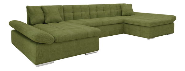 ZobrazitRozkládací rohová sedačka je ideální volbou pro ty, kdo hledají pohodlí a styl. Kdo by nesnil o tom, že si po náročném dni bude moci natáhnout nohy na pohodlné rohové pohovce? Nebo abys večer mohl sednout v širší skupině přátel bez obav, že si navzájem narazí lokty? Rohová pohovka Agata s funkcí spaní tato očekávání splňuje. Tato moderní rohová pohovka jistě osloví milovníky netradiční elegance ve skutečně hollywoodském stylu. Její zajímavá forma osvěží zařízení interiéru a zajistí, aby si celý obývací pokoj zachoval jednotný styl. Rohová pohovka typu „U“ zaručuje pocit pohodlí, komfortu a relaxu během rodinného volného času i během setkání s přáteli. Takový tvar prostě musí být v interiéru vystaven! Prostorná rohová pohovka zaujme každého v domě. Bude také skvělým prostorem pro dětské hry – vaše děti si mohou postavit domeček z přiložených polštářů, zatímco vy si budete užívat nerušeného odpočinku ve druhé části nábytku a zároveň dohlížet na jejich bezpečnost. Čalouněné opěradlo je pevně připevněno. Nastavitelné područky vám usnadní nastavení nejpohodlnější opory. Konstrukce sedáku bude mít zase pozitivní vliv na vyrovnání jednotlivých segmentů páteře, čímž vám poskytne zdravé podmínky pro relaxaci. Po rozložení dosahuje rohová sedačka s funkcí spaní nadprůměrné plochy na spaní, která vám poskytne každodenní komfort a vašim hostům pohodlný spánek. Díky dvěma kontejnerům na lůžkoviny získáte další, diskrétní úložný prostor pro sezónní oblečení a vzácně používané doplňky. Měkké tvary rohové pohovky se nabízí v pozoruhodných barvách. Široký výběr barev umožňuje snadno zvýraznit kvalitu vašeho interiéru. Zadní část čalouněná látkou vám navíc dává možnost umístit nábytek libovolným způsobem – i v centrální části obývacího pokoje bude vypadat velmi dobře. Chromované přední nohy dodávají nábytku jemný šarm a zároveň dodávají zařízení jemný nádech modernosti. Díky použití vysoce kvalitních komponentů se rozkládací rohová pohovka bude dlouho těšit své spolehlivosti a odolnosti. Rozměry: délka: 360 cm, šířka: 160 cm, výška: 75 cm, plocha na spaní: 360 x 130 cm Rozměry úložného prostoru (dva kusy): délka: 147 cm, šířka: 73 cm, výška: 23 cm, a délka: 147 cm, šířka: 7 si zákazník vybere při montáži) Provedení: konstrukce sedadla: dřevěný rám + pružina + plst + pěna T2844 (10 cm) + čalounická vatovitá tkanina, konstrukce opěradla: dřevěný rám + gumový pás + pěna T2844 (5 cm) + čalounická vatovitá tkanina, sedačka U, dva úložné prostory na ložní prádlo, nastavitelné područky, sada polštářů (3 malé) - na zip, trvale čalouněné opěradlo, chromové přední nožičky, černé plastové zadní nožičky, volně stojící sedačka v prostoru (zadní strana potažena látkou2) Záruka