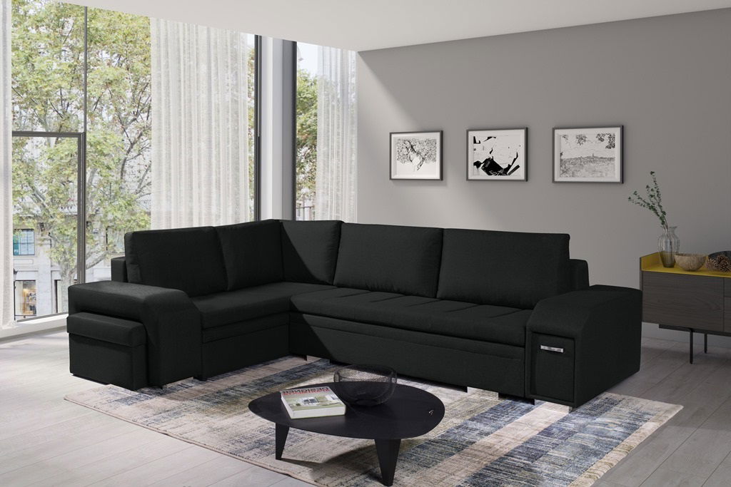 ZobrazitRohová sedačka Aja (černá) (L) je vysoce kvalitní a funkční sedací souprava. Má v sobě zabudovaný minibar a otoman, čímž poskytuje mnohem více místa pro uskladnění věcí. Sedačka se snadno rozkládá a má dostatečně velký úložný prostor. Látka Inari je odolná vůči oděru a roztržení, má vysokou kvalitu a může se žehlit při nízkých teplotách. Konstrukce je vyrobena ze dřeva, dřevotřísky a laminované desky, a sedačka má pružiny typu faliste. Výplň sedu je z pěny T-30, a nožičky jsou plastové s chromovou barvou. Sedačka má plochu na spaní 250 x 150 cm a úložné prostory jsou umístěny v sedačce i v otomanu. Sedačka se vejde do výtahu a do dveří o šířce 80 cm.