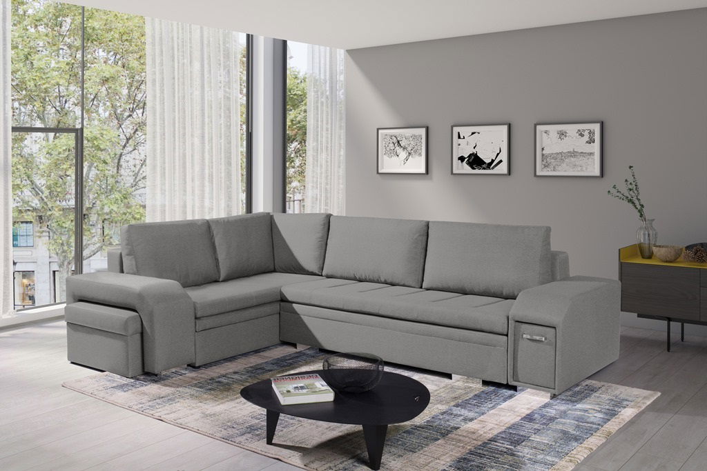 ZobrazitRohová sedačka Aja je vysoce kvalitní sedací souprava s rozkládací funkcionalitou a úložným prostorem. Tkanina Inari 91 je odolná vůči oděru a roztržení, s testem oděruvzdornosti Martindale 49 000 cyklů. Konstrukce sedačky je ze dřeva, dřevotřísky a laminované desky s pěnovou výplní T-30. Sedačka má v jedné opěrce ukrytý minibar a ve druhé otoman. Nožičky jsou plastové s barvou chromu a sedačka se vejde do výtahu a dveří o šířce 80 cm. Rozměry sedačky jsou výška 90 cm, hloubka 205 cm a plocha na spaní 250 x 150 cm.