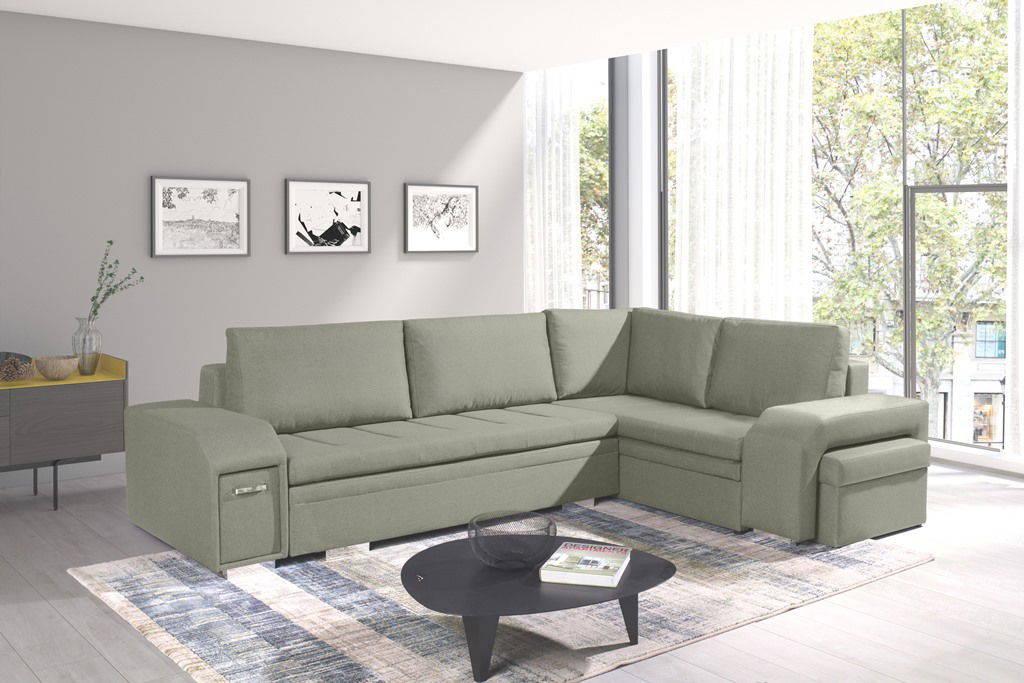 ZobrazitRohová sedačka Aja je vysoce kvalitní rozkládací sedačka s úložným prostorem a minibarem v jedné opěrce a otomanem ve druhé. Tkanina Inari 34 je odolná vůči oděru a roztržení, a může se žehlit při nízkých teplotách. Konstrukce je ze dřeva, dřevotřísky a laminované desky, s falistými pružinami a výplní z pěny T-30. Nožičky jsou plastové a barvy chromu. Sedačka má plochu na spaní 250 x 150 cm a rozkládací mechanismus automat. Úložný prostor je k dispozici v sedačce i v otomanu. Sedačka se vejde do výtahu a do dveří o šířce 80 cm. Rozměry balíků jsou: 1 (v.š.h.): 100x72x61 cm/60 kg, bal. 2 (v.š.h.): 178x78x64 cm/70 kg 3 (v.š.h.): 171x99x73 cm/80 kg.