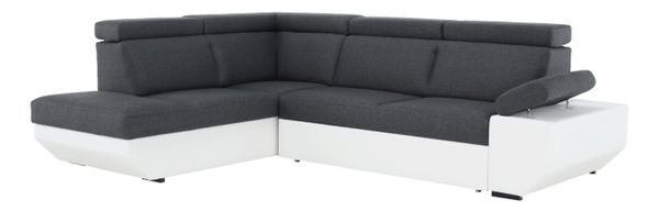Rohová sedačka Akron je designovaná do moderně zařízených prostor. Skvěle zapadne mezi ostatní nábytek v místnosti. Je velmi praktická a pohodlná na sezení. O pohodlí se postarají polohovatelné opěrky hlavy a područka s funkcí sklápění. Praktičnost spočívá v možnosti rozkladu, čímž vznikne plocha na spaní a úložném prostoru. Je čalouněná černou ekokůží v kombinaci s melírování látkou.