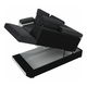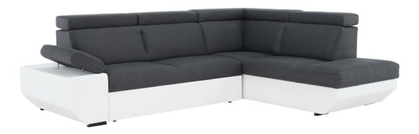 Rohová sedačka Akron je designovaná do moderně zařízených prostor. Skvěle zapadne mezi ostatní nábytek v místnosti. Je velmi praktická a pohodlná na sezení. O pohodlí se postarají polohovatelné opěrky hlavy a područka s funkcí sklápění. Praktičnost spočívá v možnosti rozkladu, čímž vznikne plocha na spaní a úložném prostoru. Je čalouněná černou ekokůží v kombinaci s melírování látkou.
