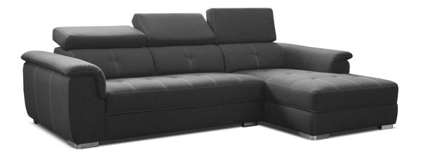 Rohová sedačka v provedení pravý roh s kontrastním prošíváním je ideální do větších obývacích pokojů, kde vynikne její designová jedinečnost a dominantní barva. Sedák je vyroben z pružiny, čímž je zaručen komfort měkkého sezení a tvarová trvanlivost sedačky. Sedačka stojí na drobných širších nožičkách v chromové barvě a má variabilní výšku (80 cm až 90 cm), protože je vybavena třemi polohovatelnými opěrkami hlavy (až do vodorovného sklopení).