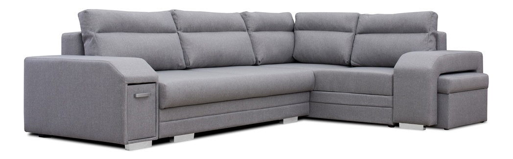 ZobrazitRohová sedačka Alfredo (světle šedá) má v jedné opěrce ukrytý minibar a ve druhé otoman. Je rozkládací se dvěma úložnými prostory a má plochu na spaní 250 x 150 cm. Tkanina Inari 91 je vysoce kvalitní látka ze dvou barevných nití, odolná vůči oděru a roztržení. Konstrukce je z dřevotřísky a lamino desky, pružina je falistá a výplň pěna T-30. Nožičky jsou z plastu a mají chromovou barvu. Sedačka má hloubku sedu 56 cm a výšku sedu 42 cm. Rozměry balíku 1 jsou 100x72x61 cm/60 kg a rozměry balíku č. 1 2 jsou 178x78x64 cm/ 70 kg.