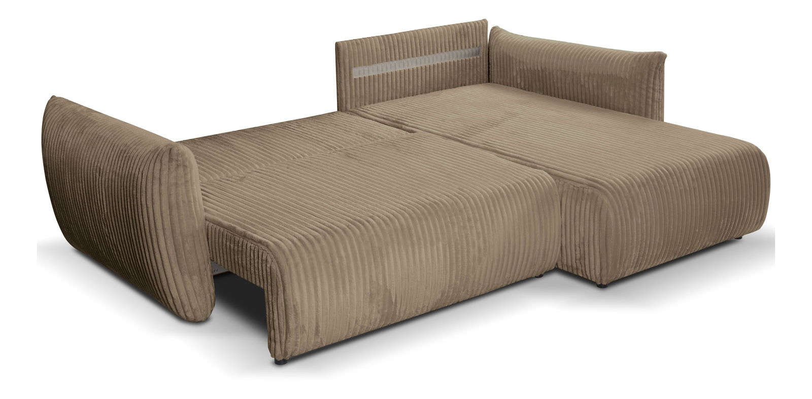ZobrazitTato rohová sedačka spojuje eleganci s praktičností a pohodlím. Její konstrukce je vyrobena z borovicového dřeva a dřevotřísky, což zaručuje pevnost a dlouhou životnost. Sedák je vyplněn PUR pěnou T-1620, která poskytuje optimální podporu a pohodlí. Sedačka je rozkládací, s plochou na spaní o rozměrech 145 x 212 cm, ideální pro hosty. Výška sezení je 42 cm a hloubka sezení 60 cm, což přispívá k pohodlnému sezení. Zádovou opěrku tvoří polštáře, včetně jednoho dekorativního polštáře v ceně. Sedačka má úložný prostor o rozměrech 118,6 x 67 x 18,5 cm, ideální pro uschování různých předmětů. Hřbet sedačky je potažen stejnou látkou, což dodává jednotný vzhled. Sedačka nemá nastavitelné opěrky hlavy ani područky. Nožičky jsou černé plastové, výšky 3,5 cm, a zajišťují stabilitu a moderní vzhled. Typ rozkládání je DL, což usnadňuje manipulaci při rozkládání sedačky.