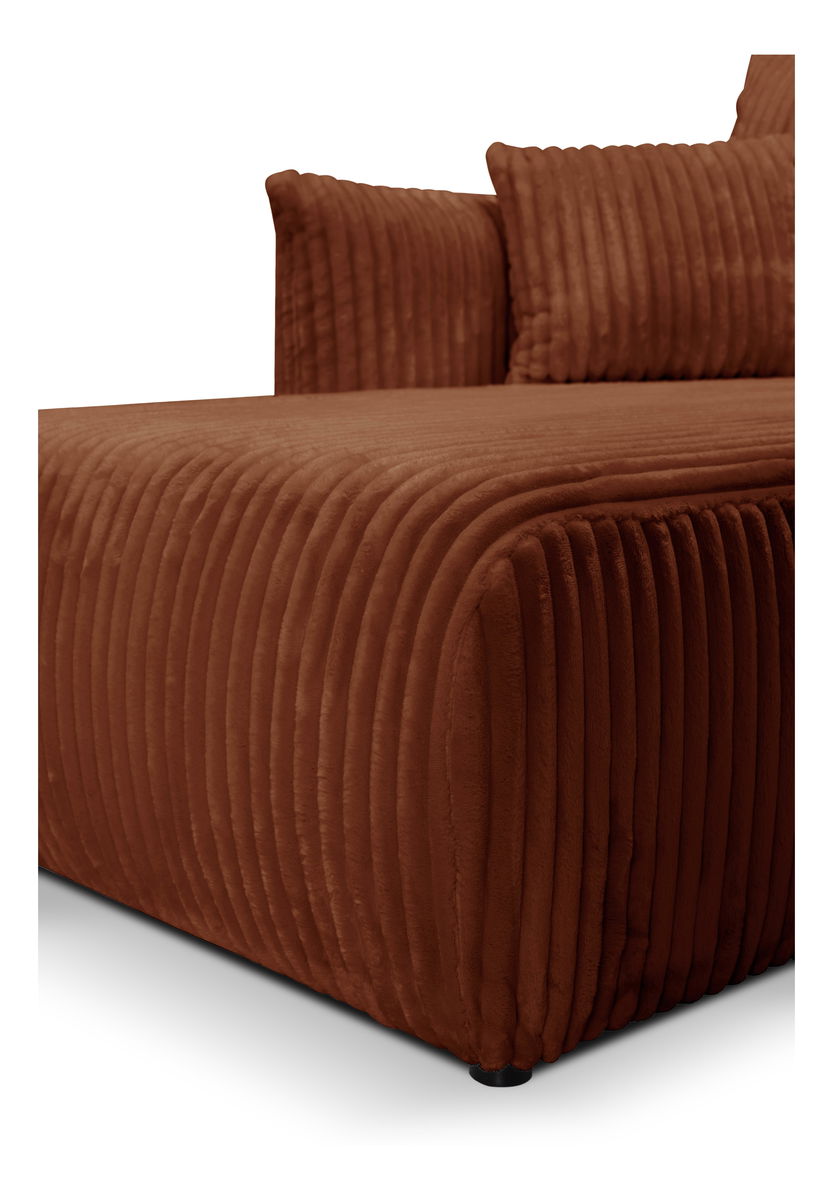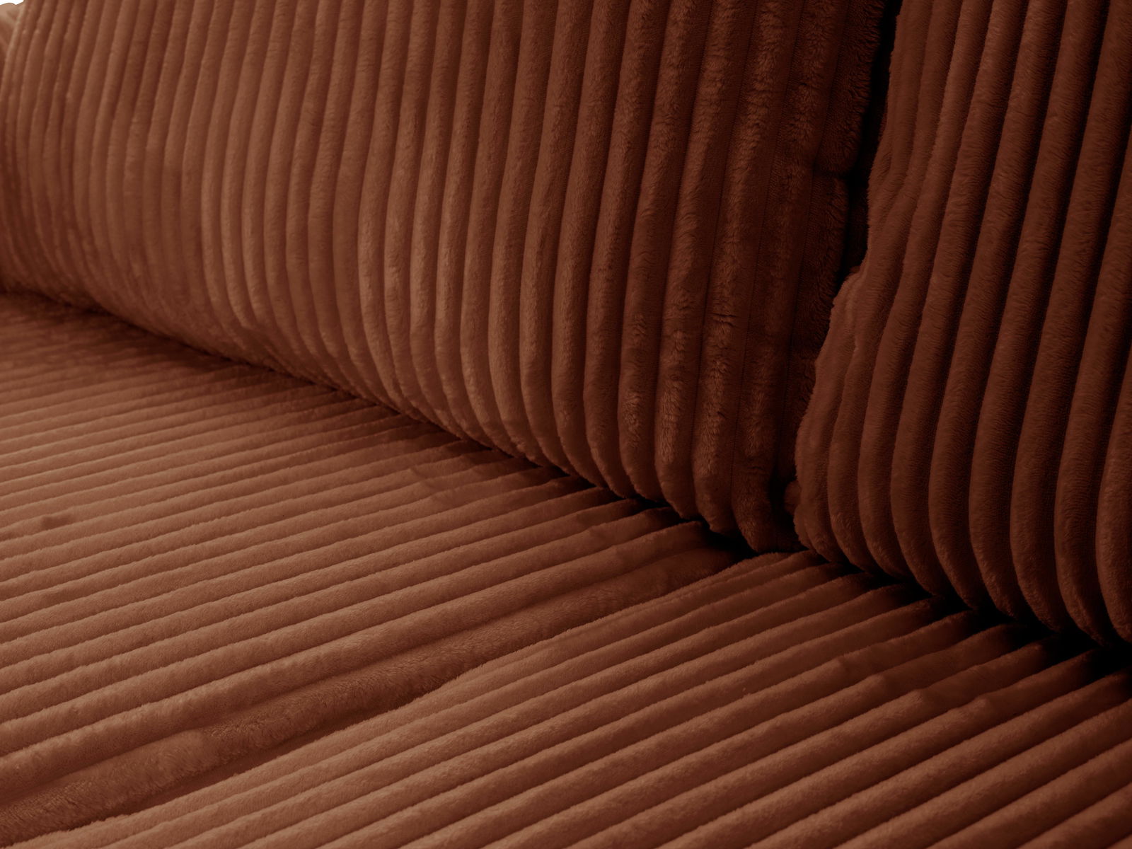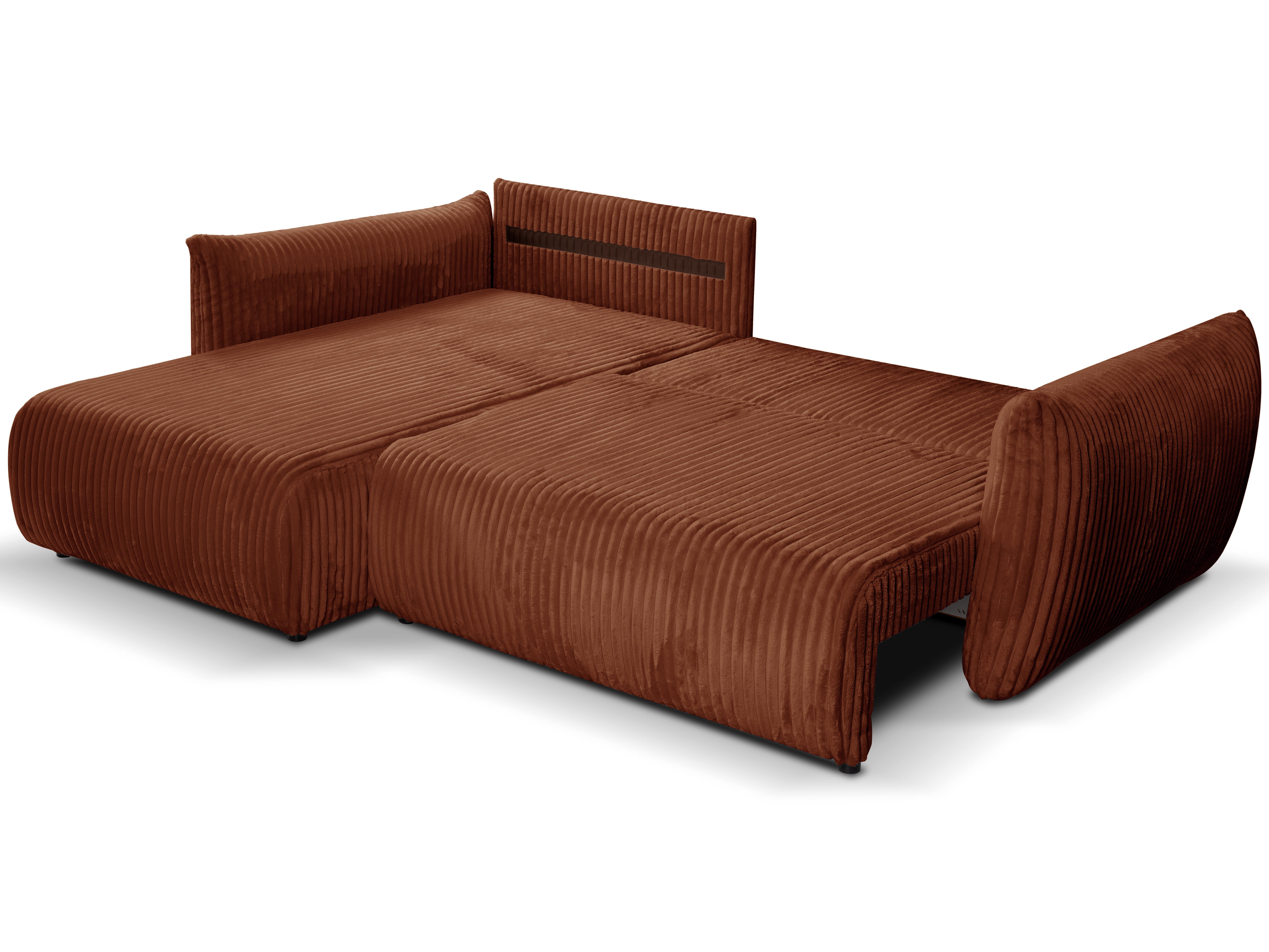ZobrazitTato rohová sedačka spojuje eleganci s praktičností a pohodlím. Její konstrukce je vyrobena z borovicového dřeva a dřevotřísky, což zaručuje pevnost a dlouhou životnost. Sedák je vyplněn PUR pěnou T-1620, která poskytuje optimální podporu a pohodlí. Sedačka je rozkládací, s plochou na spaní o rozměrech 145 x 212 cm, ideální pro hosty. Výška sezení je 42 cm a hloubka sezení 60 cm, což přispívá k pohodlnému sezení. Zádovou opěrku tvoří polštáře, včetně jednoho dekorativního polštáře v ceně. Sedačka má úložný prostor o rozměrech 118,6 x 67 x 18,5 cm, ideální pro uschování různých předmětů. Hřbet sedačky je potažen stejnou látkou, což dodává jednotný vzhled. Sedačka nemá nastavitelné opěrky hlavy ani područky. Nožičky jsou černé plastové, výšky 3,5 cm, a zajišťují stabilitu a moderní vzhled. Typ rozkládání je DL, což usnadňuje manipulaci při rozkládání sedačky.