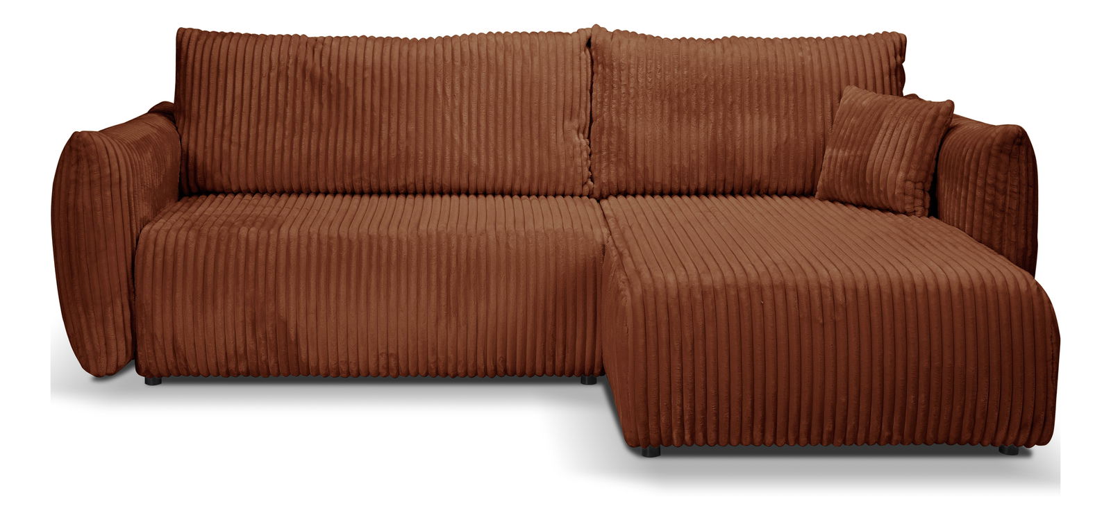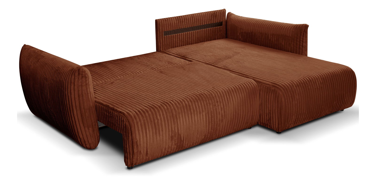 ZobrazitTato rohová sedačka spojuje eleganci s praktičností a pohodlím. Její konstrukce je vyrobena z borovicového dřeva a dřevotřísky, což zaručuje pevnost a dlouhou životnost. Sedák je vyplněn PUR pěnou T-1620, která poskytuje optimální podporu a pohodlí. Sedačka je rozkládací, s plochou na spaní o rozměrech 145 x 212 cm, ideální pro hosty. Výška sezení je 42 cm a hloubka sezení 60 cm, což přispívá k pohodlnému sezení. Zádovou opěrku tvoří polštáře, včetně jednoho dekorativního polštáře v ceně. Sedačka má úložný prostor o rozměrech 118,6 x 67 x 18,5 cm, ideální pro uschování různých předmětů. Hřbet sedačky je potažen stejnou látkou, což dodává jednotný vzhled. Sedačka nemá nastavitelné opěrky hlavy ani područky. Nožičky jsou černé plastové, výšky 3,5 cm, a zajišťují stabilitu a moderní vzhled. Typ rozkládání je DL, což usnadňuje manipulaci při rozkládání sedačky.