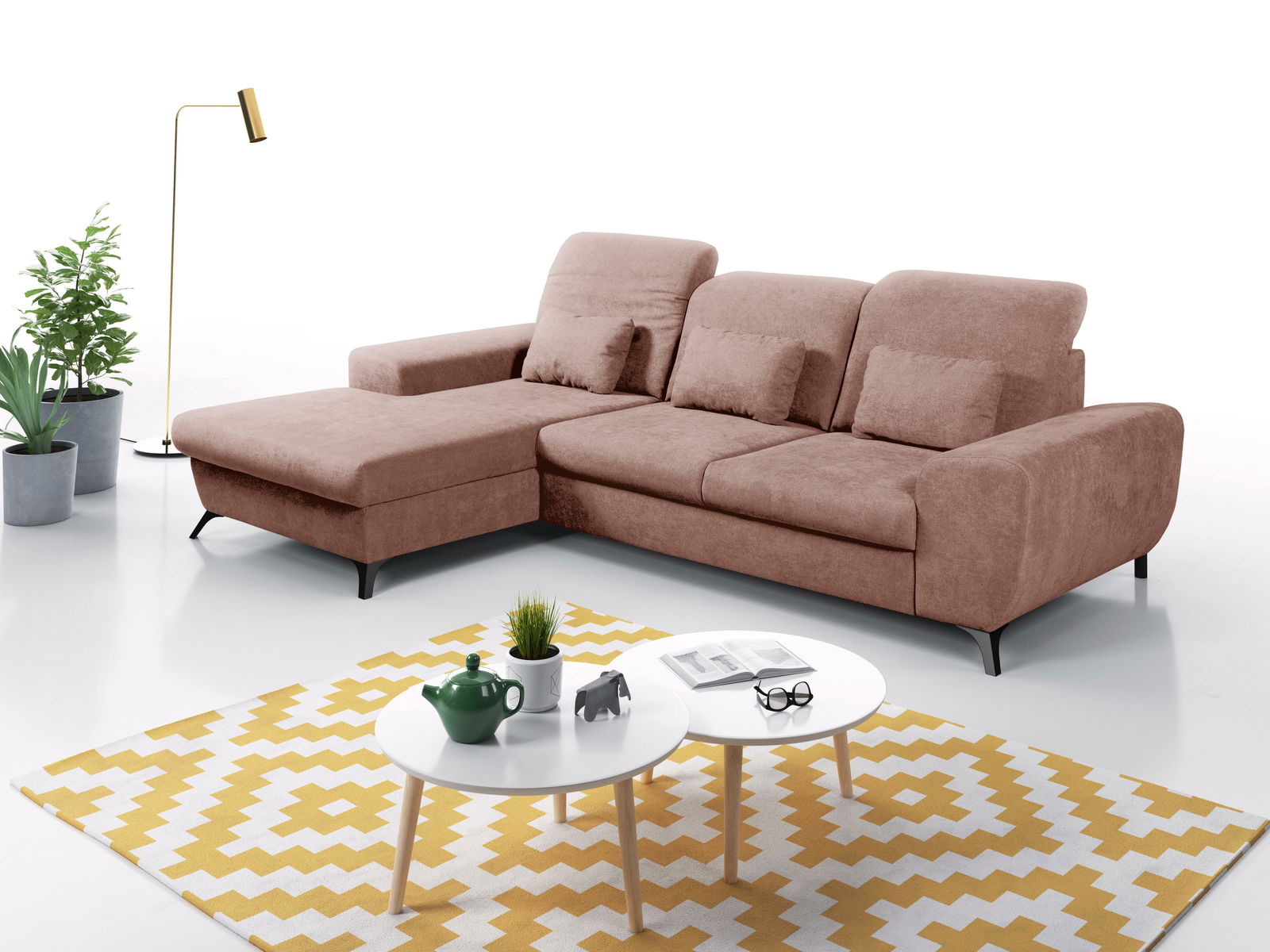 ZobrazitTato rohová sedačka je dokonalou kombinací stylu a funkčnosti. Její konstrukce je vyrobena ze dřeva a dřevotřísky, což zaručuje pevnost a dlouhou životnost. Sedák je tvořen PUR pěnou a pružinami, což poskytuje maximální komfort při sezení. Sedačka je rozkládací, čímž nabízí plochu na spaní o rozměrech 130 x 208 cm, a její výška sezení je 42 cm s hloubkou sezení 64 cm a výškou područek 55 cm. Disponuje také úložným prostorem, ideálním pro uschování různých předmětů. Hřbet je potažen stejnou látkou, což dodává sedačce elegantní vzhled ze všech stran. Nastavitelné opěrky hlavy přidávají na pohodlí. Nožičky jsou vyrobeny z kovu a plastu, což zajišťuje stabilitu a moderní design. Tkanina Avra s povrchovou úpravou WATER BLOCKED brání vstřebávání tekutin, což umožňuje snadné odstranění rozlité kávy, čaje nebo vína pomocí hadříku nebo papírového ručníku. Tkanina má certifikáty „Bezpečné pro kojence“, „Bezpečné pro děti“ a „Vhodné pro lidi“, splňuje přísné normy výroby pro děti a má certifikát „OEKO-TEX Standard 100“. Odolnost tkaniny je potvrzena 50 000 cykly Martindale. Sedačka se dodává ve dvou balících.
