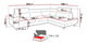 volně stojící rohová pohovka (zadní část čalouněná látkou)