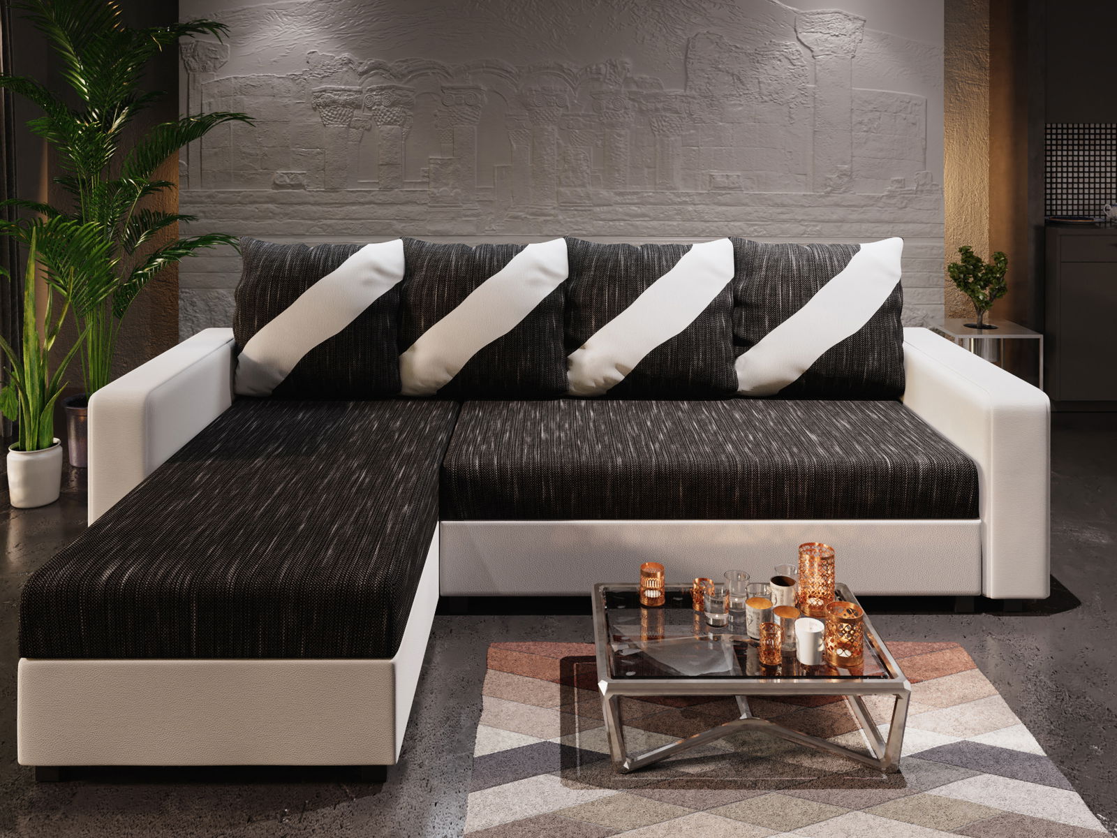 ZobrazitHledáte moderní rohovou sedací soupravu, která dodá vašemu interiéru stylový a moderní vzhled? Pokud ano, rohová sedací souprava Ardait je přesně to, co potřebujete! Tato pohovka má jedinečnou designovou vychytávku - čtyři oboustranné polštáře s různými motivy, které můžete snadno otočit a změnit tak vzhled svého obývacího pokoje. Pohovka je navíc snadno rozkládací, takže poskytuje i pohodlnou plochu na spaní o rozměrech 200x132 cm. Kromě toho má také úložný prostor, do kterého můžete uložit své věci a udržovat tak v obývacím pokoji pořádek.