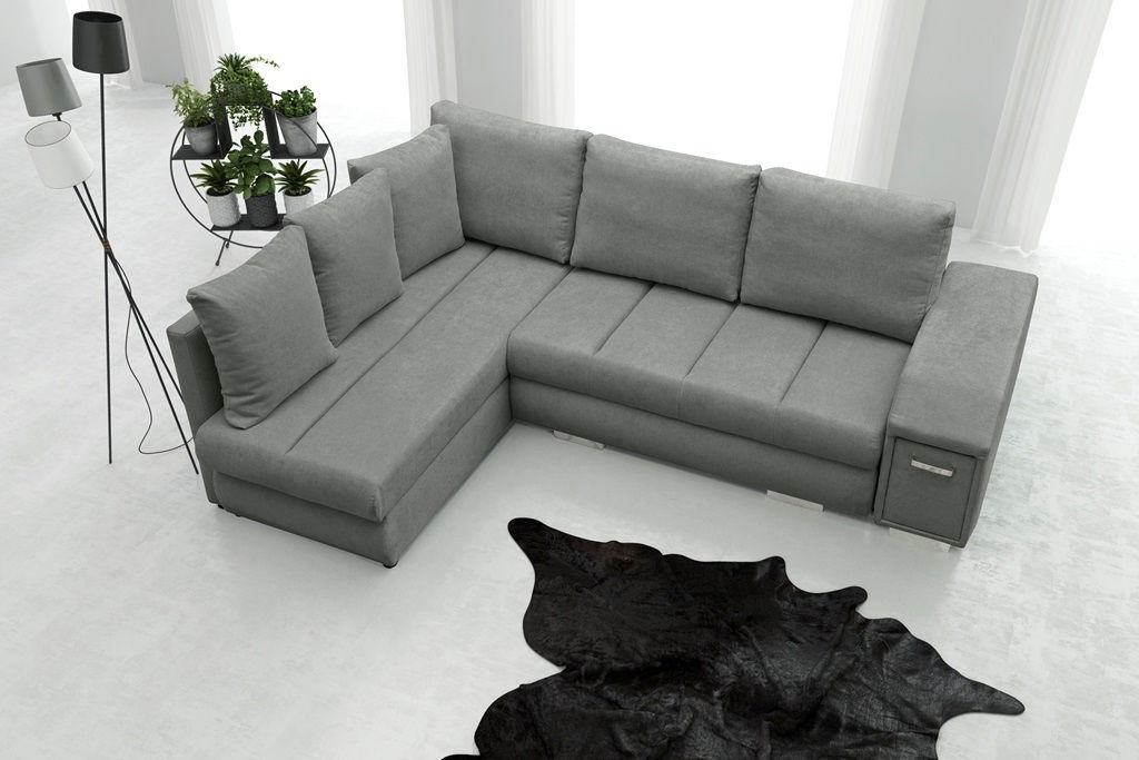 ZobrazitRohová sedačka Arlene (šedá) (L) o výšce 90 cm a hloubce 189 cm je ideální volbou pro ty, kteří hledají pohodlné řešení pro každodenní spaní a odpočinek. Sedačka má v opěrce ukrytý praktický minibar a úložný prostor. Tkanina Rico 09 je vyrobena z polyesteru (PES) a má silnou strukturu a odolnost vůči žmolkům. Rico je odolná proti roztahování, roztržení a také slunečnímu záření. Látku lze čistit na mokro. Test oděruvzdornosti Martindale vykazuje vysokou odolnost. Konstrukce sedačky je ze dřeva, dřevotřísky a laminované desky. Sedačka má falistou pružinu a výplň z pěny T-30. Nožičky jsou plastové v chromové barvě. Plocha na spaní je 147 x 200 cm a rozkládací mechanismus je automat. Sedačka má 2x úložný prostor a hloubku sedu 53 cm a výšku sedu 42 cm. Sedačku lze čalounit i ze zadní strany. Rozměry balíku 1 jsou 195x85x90 cm/75 kg a rozměry balíku č. 1 2 jsou 140x105x65 cm/65 kg.