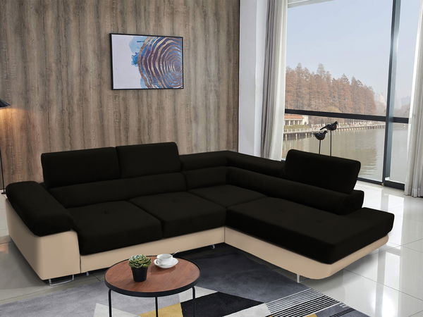 Rohová sedací souprava Ascend L (černá + béžová) (P)