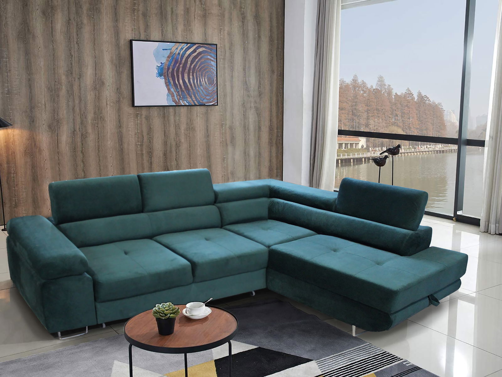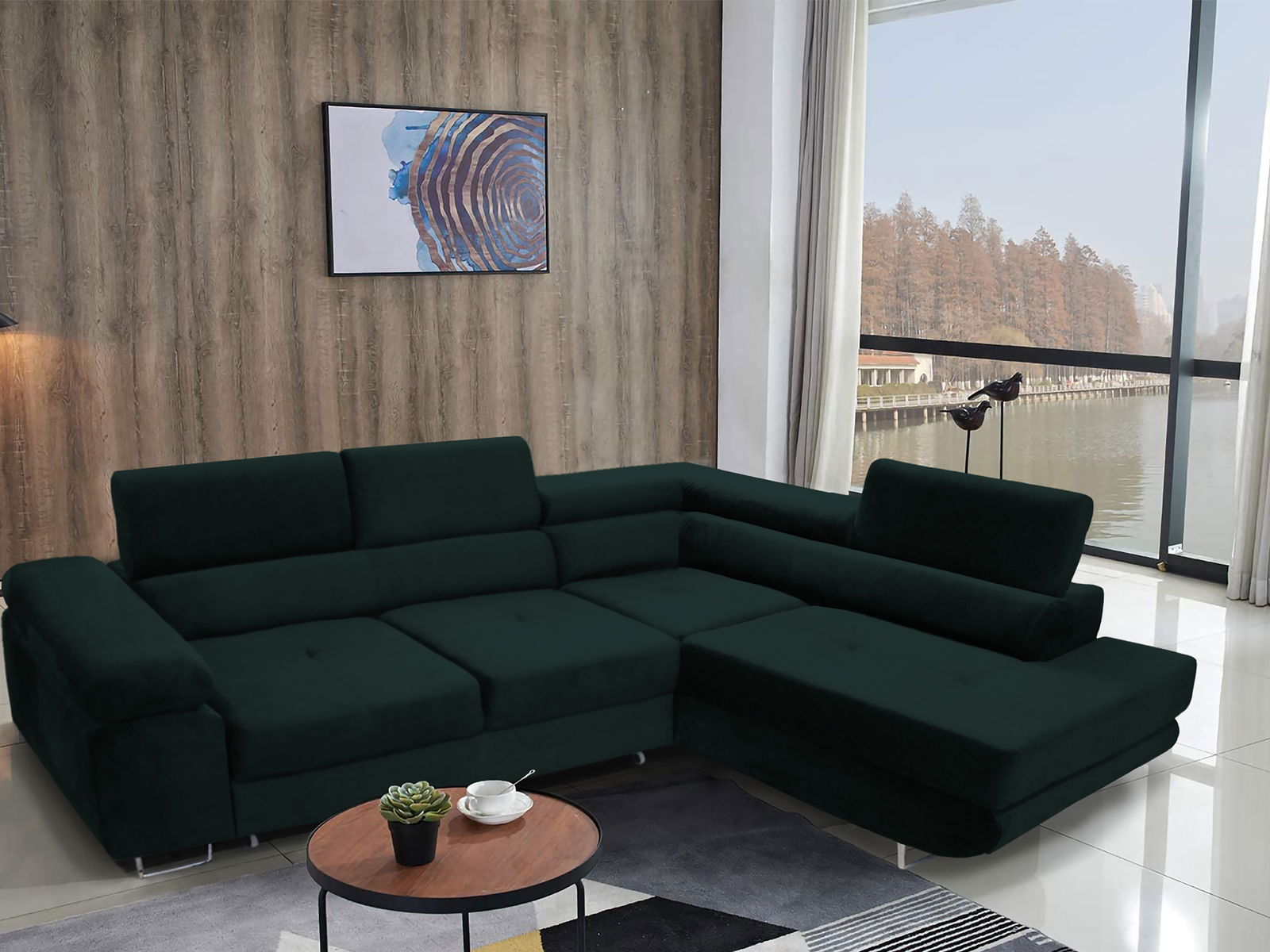 Rohová sedací souprava Ascend L (tmavě zelená) (P)