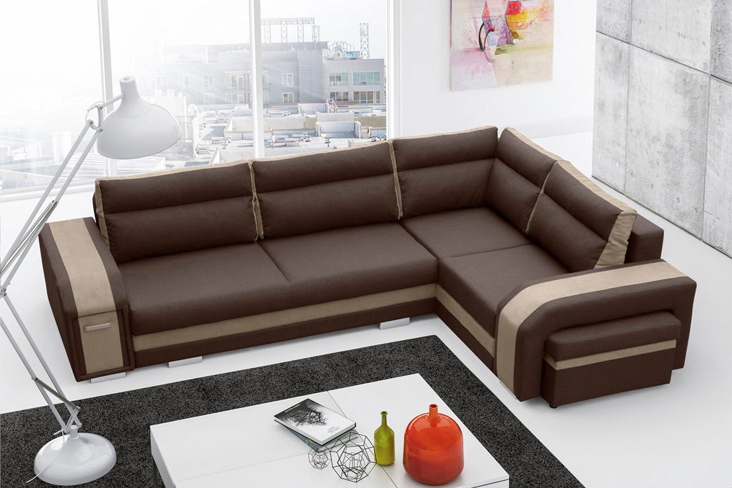 Rohová sedací souprava Asperata (hnědá + světlehnědá) (P)