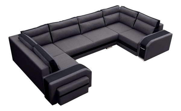 ZobrazitRohová sedačka Asperata U (tmavě šedá + černá) (L) je vynikajícím doplňkem pro váš obývací prostor. Sedačka má výšku 90 cm a hloubku 205 cm, s plochou na spaní 320 x 150 cm. Tkanina sedačky je vyrobena z vysoce kvalitní látky Inari, která je odolná vůči oděru a roztržení a složená ze dvou barevných nití. Inari látka se může žehlit při nízkých teplotách a čistit pouze ručně houbou namočenou v saponátu nebo tepovat. Test oděruvzdornosti Martindale pro Inari látka je 49 000 cyklů a pro sedačku celkem je 100 000 cyklů. Konstrukce sedačky je z dřevotřísky a laminované desky, s falistou pružinou a pěnovou výplní T-30. Nožičky jsou plastové a chromové. Sedačka obsahuje také 3 úložné prostory a rozkládací mechanismus je automatický. Čalounění sedačky je jen zepředu a rozměry balíků jsou 100x72x61 cm/60 kg a 178x78x64 cm/70 kg.