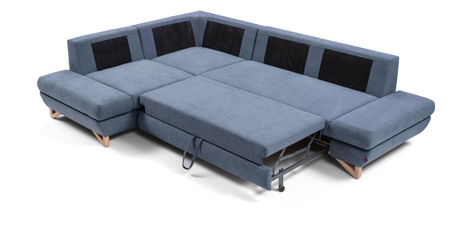 ZobrazitRohová sedačka s moderním designem je perfektním řešením pro váš obývací pokoj, kombinující komfort a funkčnost. Konstrukce je zhotovena z kvalitního dřeva a dřevotřísky, zaručující dlouhou životnost a pevnost. Sedák je pohodlný, díky kombinaci PUR pěny a pružin. Sedačka je rozkládací, s plochou na spaní 138 x 211 cm, poskytující dostatek místa pro pohodlný spánek. Výška sezení je 40 cm, hloubka sezení 61 cm a maximální výška područky je 55 cm. Sedačka nabízí také praktický úložný prostor a zadní část je potažena stejnou látkou jako zbytek nábytku. Nastavitelné područky a dřevěné nožičky o výšce 10 cm dodávají eleganci a funkčnost. Typ rozkládání je řešen praktickým vozíkem. Tkanina Avra má povrchovou úpravu WATER BLOCKED, která ztěžuje vstřebávání tekutin, což usnadňuje údržbu. Certifikáty „Bezpečné pro kojence“, „Bezpečné pro děti“ a „OEKO-TEX Standard 100“ potvrzují, že látky jsou bezpečné pro všechny uživatele. Gramáž tkaniny je 370 g/m² a její složení je 88% polyester a 12% nylon, s odolností 50 000 cyklů Marindale.
