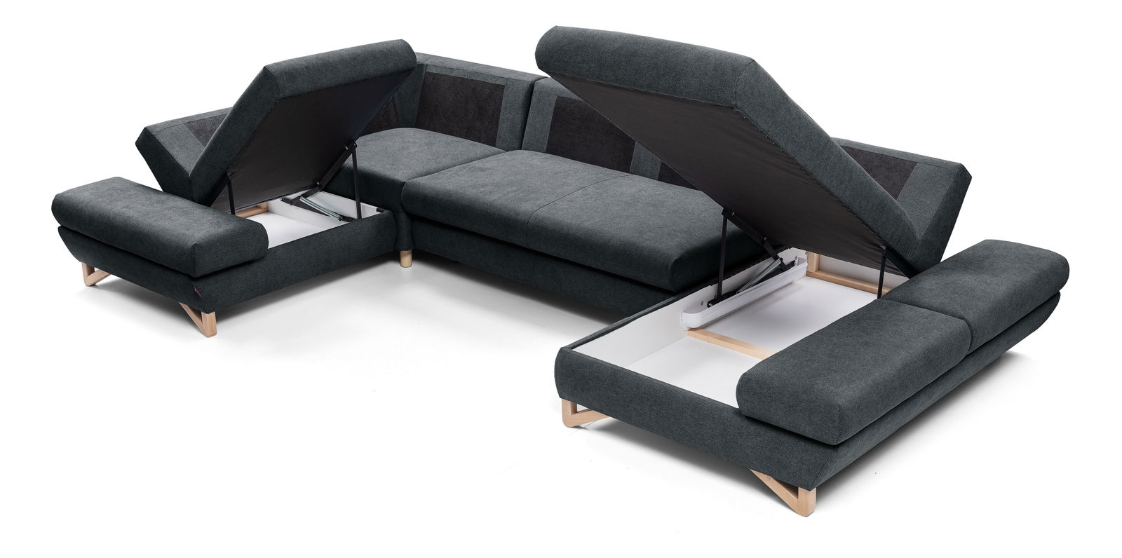 ZobrazitRohová sedačka ve tvaru U je ideálním řešením pro velké obývací prostory, kde poskytuje maximální komfort a funkčnost. Její konstrukce je vyrobena z kombinace dřeva a dřevotřísky, což zajišťuje pevnost a dlouhou životnost. Sedák je vyplněn PUR pěnou a pružinami, což zaručuje pohodlné sezení i při dlouhodobém používání. Sedačka je rozkládací, s plochou na spaní 138 x 320 cm, takže poskytuje dostatek prostoru pro komfortní přespání. Výška sezení je 40 cm, hloubka sezení 61 cm a maximální výška područky je 55 cm. Sedačka má praktický úložný prostor, který je ideální pro uskladnění ložního prádla nebo jiných předmětů. Hřbet sedačky je potažen stejnou látkou, což zaručuje jednotný a elegantní vzhled ze všech stran. Nastavitelné područky zvyšují pohodlí při sezení. Dřevěné nožičky o výšce 10 cm dodávají sedačce lehkost a styl. Sedačka je potažena tkaninou Avra, která je vybavena povrchovou úpravou WATER BLOCKED, čímž si ztěžuje vstřebávání tekutin a usnadňuje údržbu. Tato tkanina je certifikována jako bezpečná pro kojence a děti, což zaručuje její vhodnost pro všechny členy rodiny.