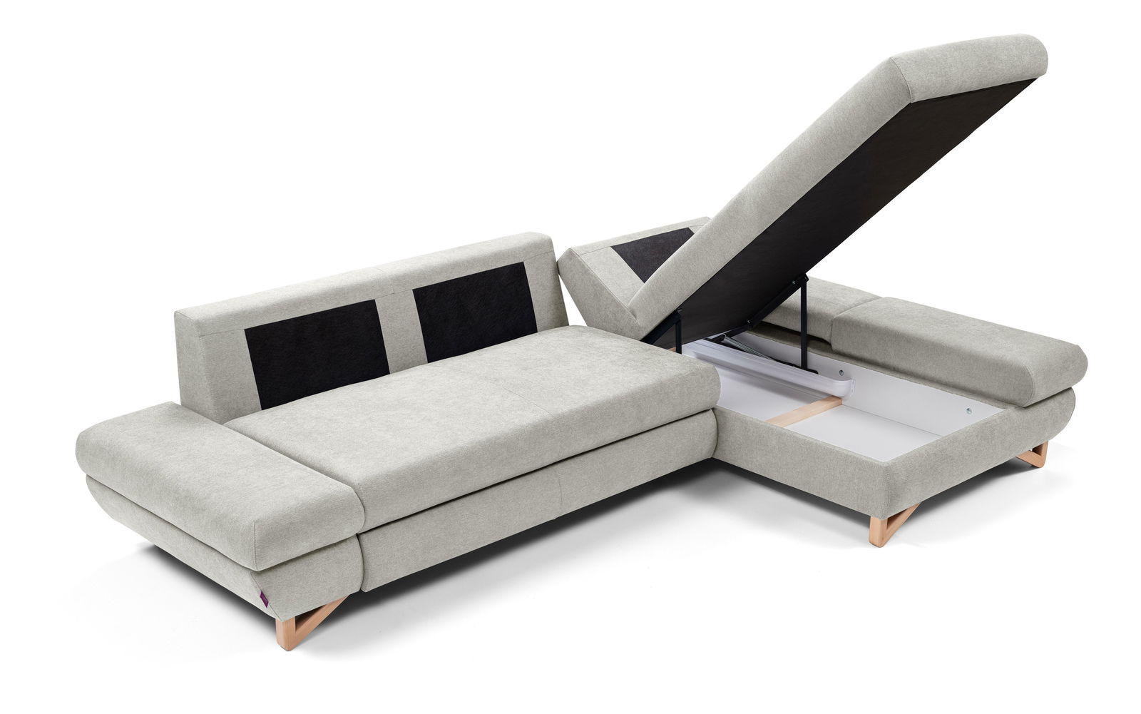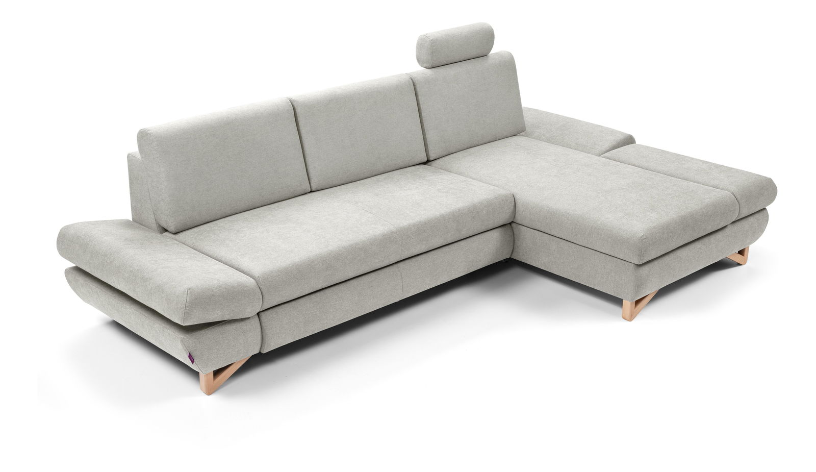 Rohová sedací souprava se záhlavníkem je ideálním doplňkem do každého moderního obývacího pokoje. Konstrukce je vyrobena z kvalitního dřeva a dřevotřísky, což zaručuje dlouhou životnost a pevnost. Sedák je pohodlný, díky kombinaci PUR pěny a pružin. Souprava je rozkládací, s rozměry spací plochy 138 x 245 cm, což poskytuje dostatek místa pro pohodlné přespání. Výška sezení je 43,5 cm, hloubka sezení 58 cm a maximální výška područky je 57 cm. Souprava má také praktický úložný prostor a zadní část potaženou stejnou látkou jako zbytek nábytku. Nastavitelné područky a dřevěné nožičky o výšce 10 cm dodávají celkovému designu eleganci a funkčnost. Typ rozkládání je řešen praktickým vozíkem, což usnadňuje manipulaci a zvyšuje pohodlí při každodenním používání.