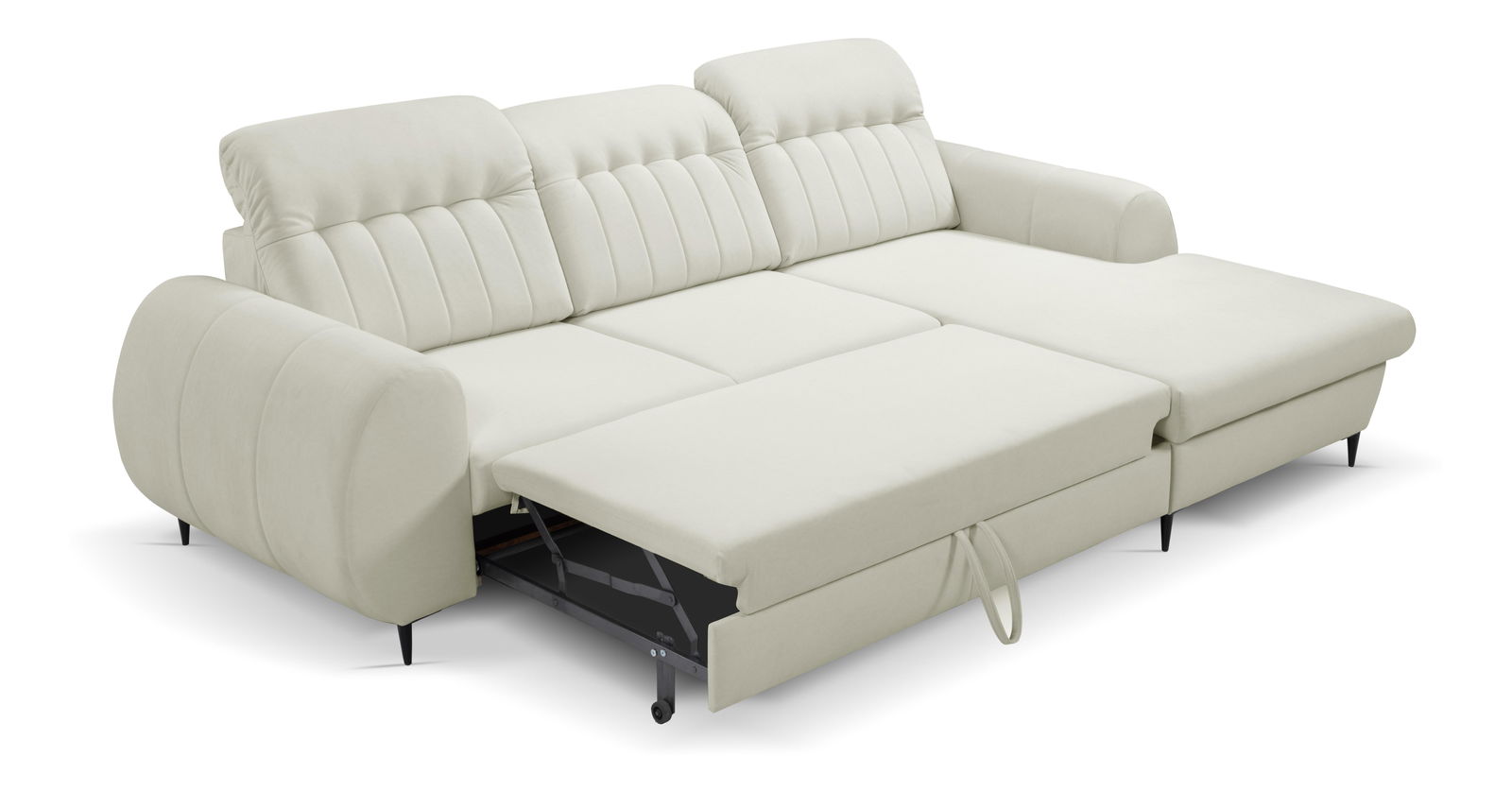 ZobrazitRohová sedačka s konstrukcí z borovicového dřeva, dřevotřísky a překližky nabízí spolehlivou pevnost a odolnost. Sedák je vyroben z PUR pěny T-3042 a T-2542, což zaručuje pohodlné a příjemné sezení. Sedačka je rozkládací a nabízí plochu na spaní o rozměrech 125 x 213 cm, což je ideální pro hosty nebo příležitostné přespání. Výška sezení je 43 cm, hloubka sezení 60 cm a výška područky 62 cm, což přispívá k optimálnímu pohodlí. Sedačka disponuje úložným prostorem o rozměrech 155 x 67 x 16,9 cm, kde můžete uschovat ložní prádlo nebo jiné věci. Hřbet je potažen stejnou látkou, čímž se dosahuje jednotného vzhledu. Sedačka má nastavitelné opěrky hlavy pro ještě větší komfort. Nožičky jsou kovové (5 ks, 10 cm) a plastové (2 ks, 10 cm a 2 ks, 4,5 cm), což zaručuje stabilitu a odolnost. Typ rozkládání je DL automat a sedačka je čalouněna kvalitní tkaninou Castel, která přidává na eleganci a trvanlivosti.