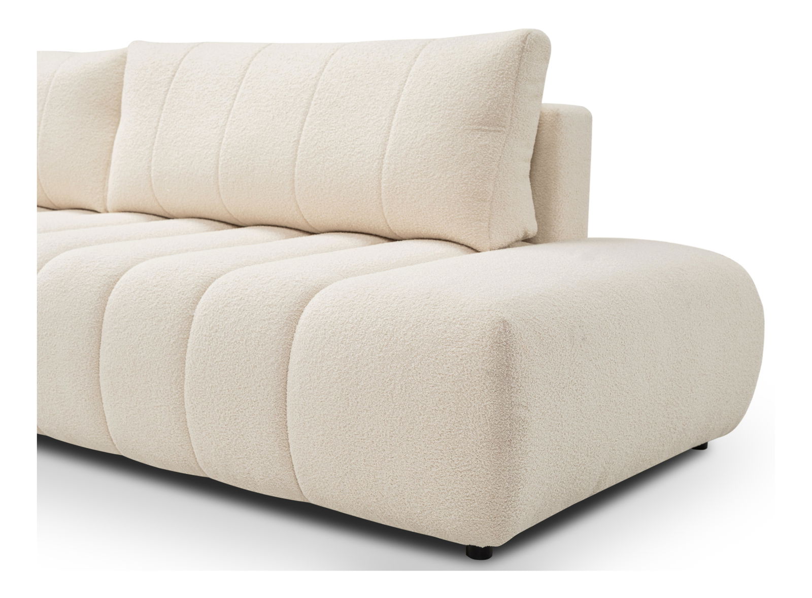 Textilie Lambi má nerovný povrch charakteristický buklé smyčkami, očky nebo nopky, což jí dodává výraznou texturu. Vyrobena je z příze složené z různých vláken, která dohromady vytvářejí jemný a texturovaný vzor. Lambi je obzvlášť známá svojí vlnovitou "uzlíkovou" strukturou a je příjemná na dotek, což ji činí vhodnou pro aplikace, kde je důležitý komfort a estetický vzhled. Gramáž: 450 g/m² ± 5%. Složení: 100% polyester.