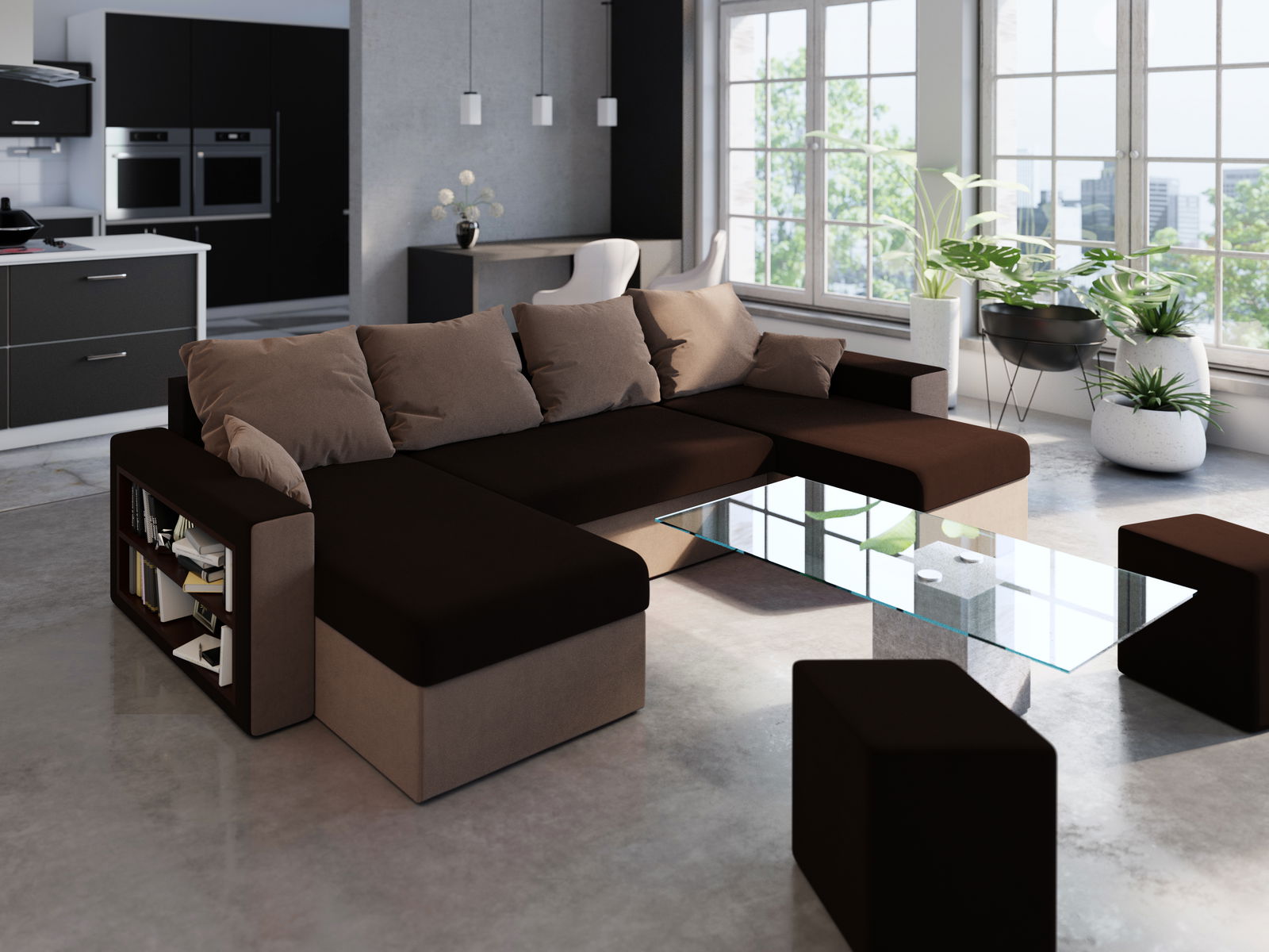 Rohová sedací souprava Baltimore (černá + šedá)