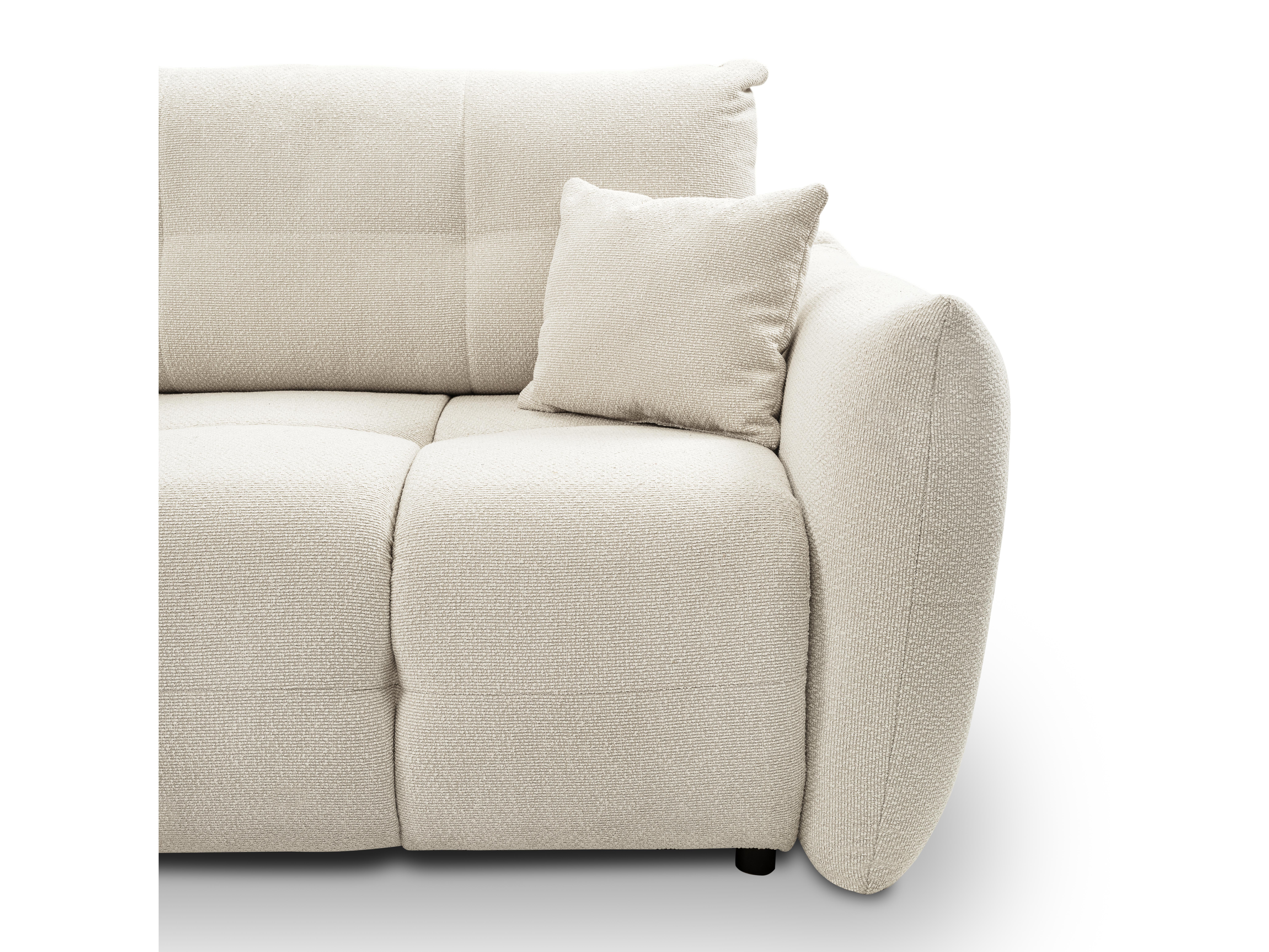 ZobrazitRohová sedačka s konstrukcí z borovicového dřeva a dřevotřísky nabízí kombinaci pevnosti a trvanlivosti. Sedák je vyroben z PUR pěny T-3042, která zajišťuje vysoký komfort sezení. Sedačka je rozkládací a poskytuje plochu na spaní o rozměrech 145 x 212 cm, ideální pro návštěvy nebo relaxaci. Výška sezení je 42 cm, hloubka sezení 60 cm a výška područky 63 cm, což přispívá k pohodlnému posezení. Úložný prostor o rozměrech 118,6 x 67 x 18,5 cm poskytuje dostatek místa na odložení ložního prádla nebo jiných věcí. Hřbet sedačky je potažen stejnou látkou, čímž se dosahuje jednotného vzhledu. Sedačka nemá nastavitelné opěrky hlavy ani područky. Plastové nožičky o výšce 3,5 cm zajišťují stabilitu a snadnou údržbu. Typ rozkládání je DL automat a součástí sedačky jsou také dva malé polštáře pro ještě větší komfort.