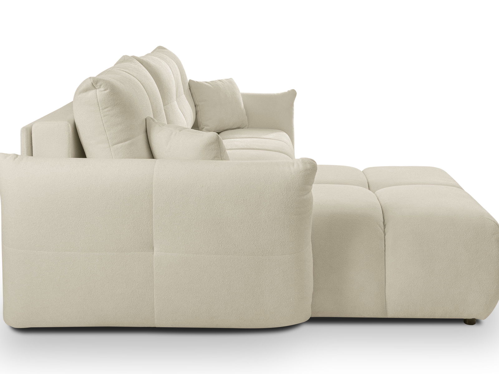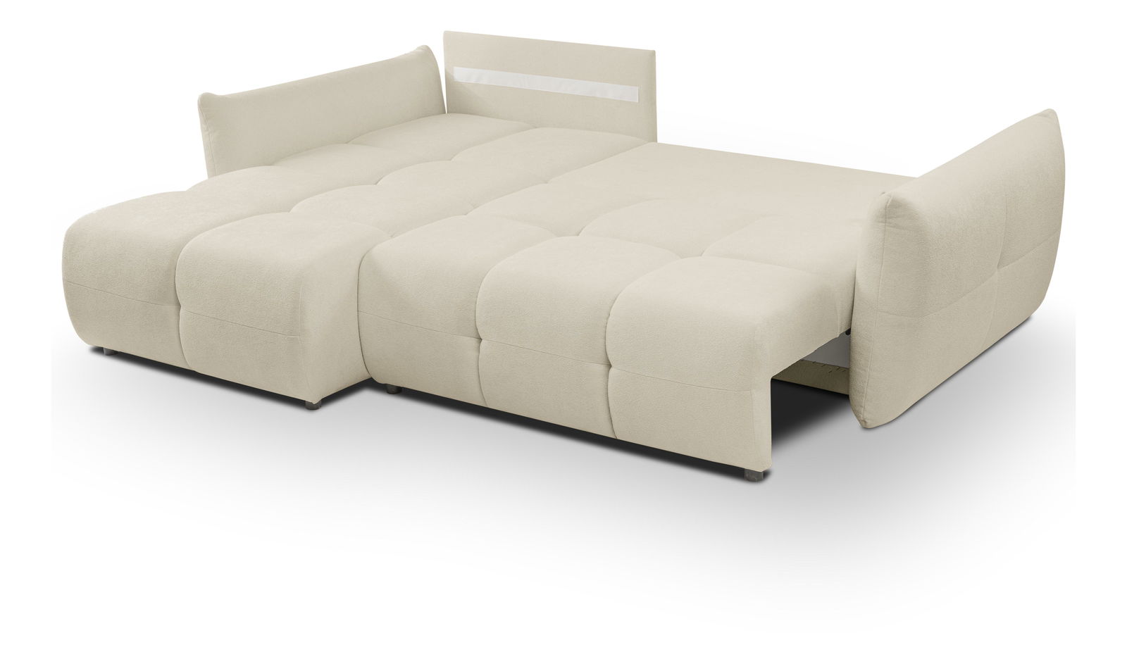 ZobrazitRohová sedačka s konstrukcí z borovicového dřeva a dřevotřísky nabízí kombinaci pevnosti a trvanlivosti. Sedák je vyroben z PUR pěny T-3042, která zajišťuje vysoký komfort sezení. Sedačka je rozkládací a poskytuje plochu na spaní o rozměrech 145 x 212 cm, ideální pro návštěvy nebo relaxaci. Výška sezení je 42 cm, hloubka sezení 60 cm a výška područky 63 cm, což přispívá k pohodlnému posezení. Úložný prostor o rozměrech 118,6 x 67 x 18,5 cm poskytuje dostatek místa na odložení ložního prádla nebo jiných věcí. Hřbet sedačky je potažen stejnou látkou, čímž se dosahuje jednotného vzhledu. Sedačka nemá nastavitelné opěrky hlavy ani područky. Plastové nožičky o výšce 3,5 cm zajišťují stabilitu a snadnou údržbu. Typ rozkládání je DL automat a součástí sedačky jsou také dva malé polštáře pro ještě větší komfort.