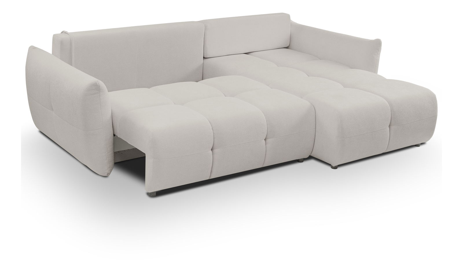 ZobrazitRohová sedačka s konstrukcí z borovicového dřeva a dřevotřísky nabízí kombinaci pevnosti a trvanlivosti. Sedák je vyroben z PUR pěny T-3042, která zajišťuje vysoký komfort sezení. Sedačka je rozkládací a poskytuje plochu na spaní o rozměrech 145 x 212 cm, ideální pro návštěvy nebo relaxaci. Výška sezení je 42 cm, hloubka sezení 60 cm a výška područky 63 cm, což přispívá k pohodlnému posezení. Úložný prostor o rozměrech 118,6 x 67 x 18,5 cm poskytuje dostatek místa na odložení ložního prádla nebo jiných věcí. Hřbet sedačky je potažen stejnou látkou, čímž se dosahuje jednotného vzhledu. Sedačka nemá nastavitelné opěrky hlavy ani područky. Plastové nožičky o výšce 3,5 cm zajišťují stabilitu a snadnou údržbu. Typ rozkládání je DL automat a součástí sedačky jsou také dva malé polštáře pro ještě větší komfort.