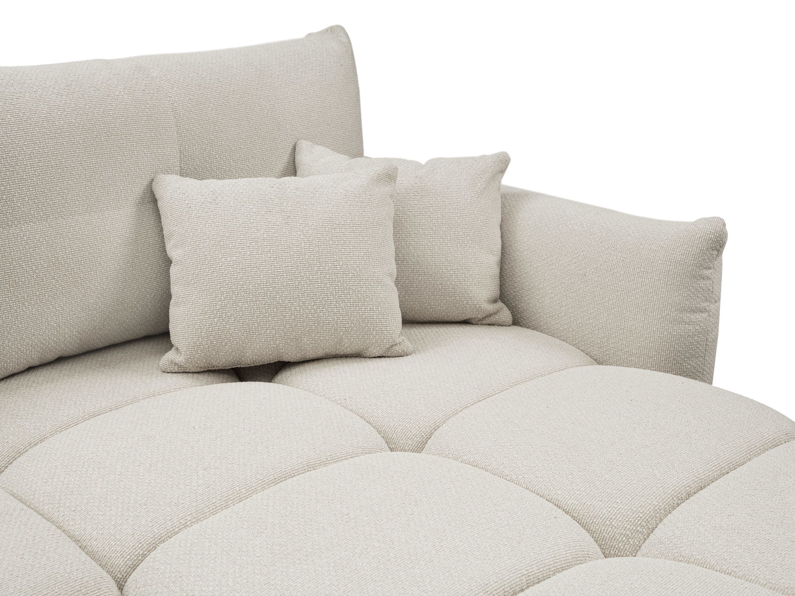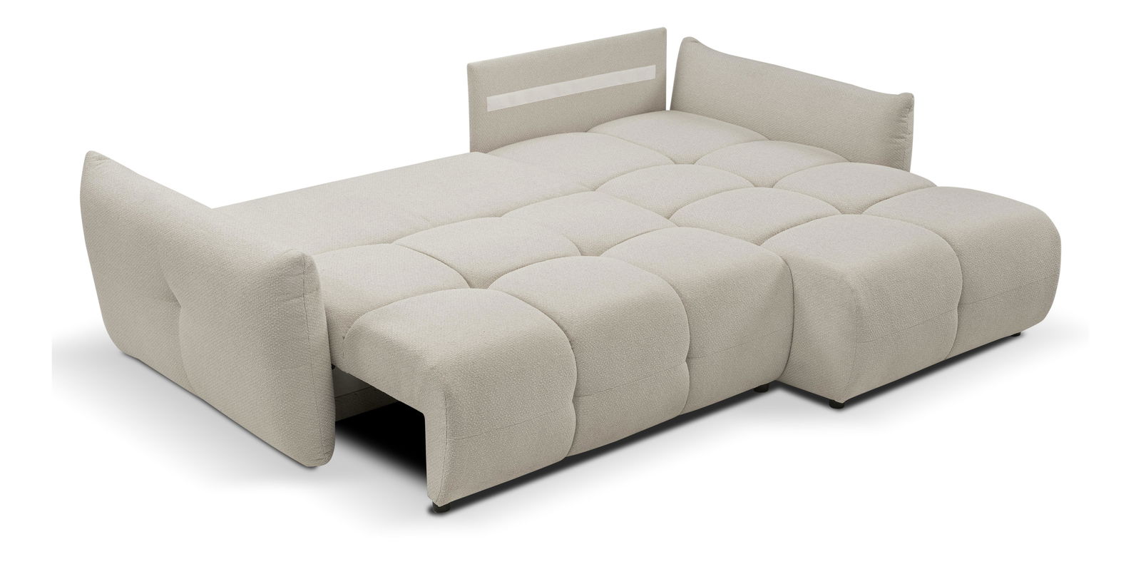 ZobrazitRohová sedačka s konstrukcí z borovicového dřeva a dřevotřísky nabízí kombinaci pevnosti a trvanlivosti. Sedák je vyroben z PUR pěny T-3042, která zajišťuje vysoký komfort sezení. Sedačka je rozkládací a poskytuje plochu na spaní o rozměrech 145 x 212 cm, ideální pro návštěvy nebo relaxaci. Výška sezení je 42 cm, hloubka sezení 60 cm a výška područky 63 cm, což přispívá k pohodlnému posezení. Úložný prostor o rozměrech 118,6 x 67 x 18,5 cm poskytuje dostatek místa na odložení ložního prádla nebo jiných věcí. Hřbet sedačky je potažen stejnou látkou, čímž se dosahuje jednotného vzhledu. Sedačka nemá nastavitelné opěrky hlavy ani područky. Plastové nožičky o výšce 3,5 cm zajišťují stabilitu a snadnou údržbu. Typ rozkládání je DL automat a součástí sedačky jsou také dva malé polštáře pro ještě větší komfort.