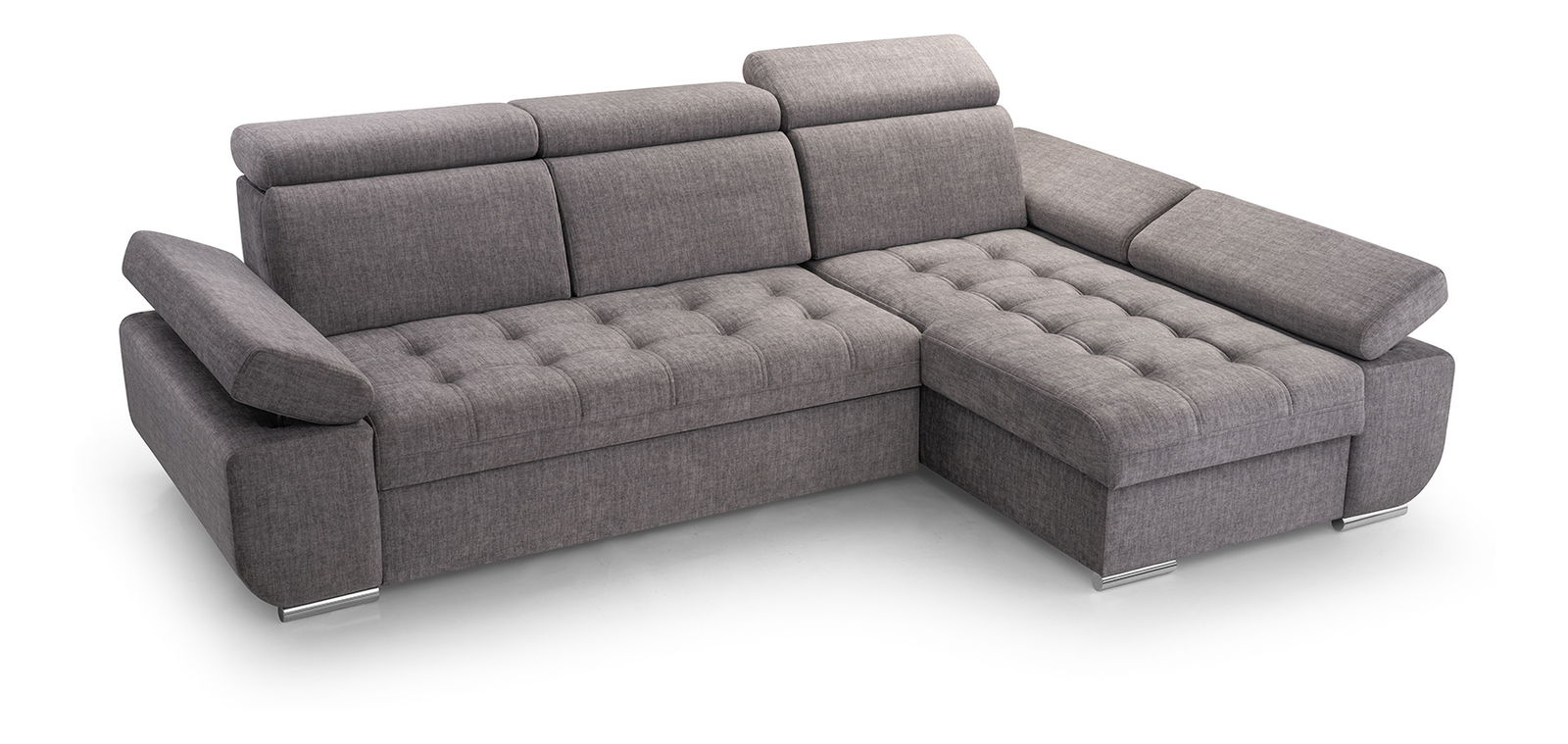 Rohová sedačka Belona v sobě perfektně spojuje praktické a dekorativní prvky. Moderní vzhled dávají sedačce krásně prošívané sedací polštáře a kovové nohy v chromovaném provedení. O Váš komfort se postarají nastavitelné opěrky hlavy a područky. Sedačka je vyrobena z kvalitní odolné tkaniny v elegantní barvě.