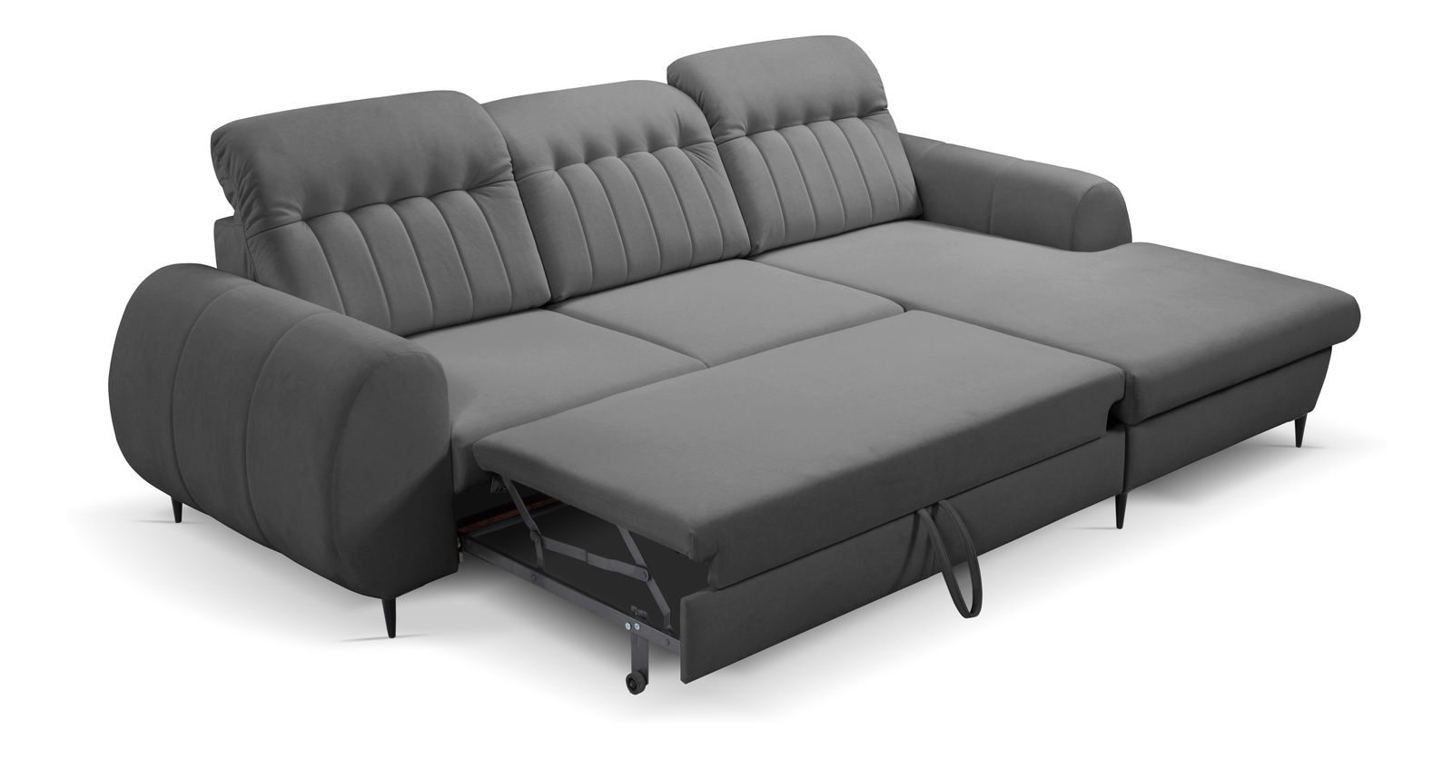 ZobrazitRohová sedačka s konstrukcí z borovicového dřeva, dřevotřísky a překližky nabízí spolehlivou pevnost a odolnost. Sedák je vyroben z PUR pěny T-3042 a T-2542, což zaručuje pohodlné a příjemné sezení. Sedačka je rozkládací a nabízí plochu na spaní o rozměrech 125 x 213 cm, což je ideální pro hosty nebo příležitostné přespání. Výška sezení je 43 cm, hloubka sezení 60 cm a výška područky 62 cm, což přispívá k optimálnímu pohodlí. Sedačka disponuje úložným prostorem o rozměrech 155 x 67 x 16,9 cm, kde můžete uschovat ložní prádlo nebo jiné věci. Hřbet je potažen stejnou látkou, čímž se dosahuje jednotného vzhledu. Sedačka má nastavitelné opěrky hlavy pro ještě větší komfort. Nožičky jsou kovové (5 ks, 10 cm) a plastové (2 ks, 10 cm a 2 ks, 4,5 cm), což zaručuje stabilitu a odolnost. Typ rozkládání je DL automat a sedačka je čalouněna kvalitní tkaninou Castel, která přidává na eleganci a trvanlivosti.