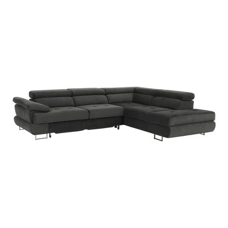 Moderní typ rohové sedačky, která vyniká svým trendovým designem je bez možnosti rozkladu. Má polohovatelné záhlaví, které zajišťuje komfortní opření zad a hlavy. Sedáky jsou s dekorativním prošitím. Má stabilní dřevěnou konstrukci. Jádro tvoří tažená pružina v kombinaci s polyuretanovou pěnou se zvýšenou hustotou. Zajímavá je praktická velká područka. Nožičky jsou kovové s povrchovou úpravou chrom.