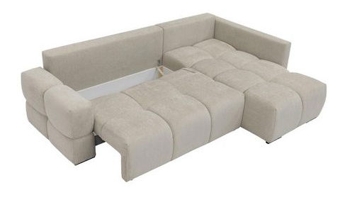 ZobrazitRohová rozkládací pohovka je ideální volbou pro ty, kteří hledají pohodlí a styl. Pokud hledáte moderní pohovku, která zapadá do nejnovějších trendů interiérového designu, rohová rozkládací pohovka Bonkoi vás jistě osloví. Zaoblené tvary, módní prošívání a neskutečné pohodlí. Moderní rohová sedačka se bude skvěle hodit do mnoha aranžmá, od klasických, přes minimalistické, až po současné. Jako opěradlo se zde používají měkké polštáře. Uvnitř nábytku naleznete prostorný úložný prostor, který využijete na přikrývky, polštáře nebo ložní prádlo. Rohová rozkládací pohovka typu DL je snadno použitelná – bez mrknutí oka ji přeměníte na prostornou postel. Tento kus nábytku skvěle poslouží jako doplňkové místo k přenocování hostů nebo ke každodennímu spaní v případě menších bytů či studií. Rozměry: šířka: 267 cm, hloubka: 185 cm, výška: 90 cm, plocha na spaní: 226 x 127 cm, úložný prostor: 138 x 65 x 22 cm. Rohová strana: univerzální (stranu si volí zákazník při montáži) Provedení: rám: borové dřevo + dřevotříska + dřevovláknitá deska + MDF deska + čalounická lepenka + překližka, sedák: T28/30 pěna + cik-cak pružina "typ B", opěradlo: (funkce na spaní) + cik-cak pružina "typ A", rohová sedačka je rozkládací, Automatická rozkládací pomůcka typu DL, má funkci spánku, má úložný prostor kovové a plastové nohy, opěradlo ve formě pohyblivých polštářů vyplněných střiženou pěnou, polštáře se zapínají stojící (zadní strana pokryta látkou) Záruka: 24 měsíců