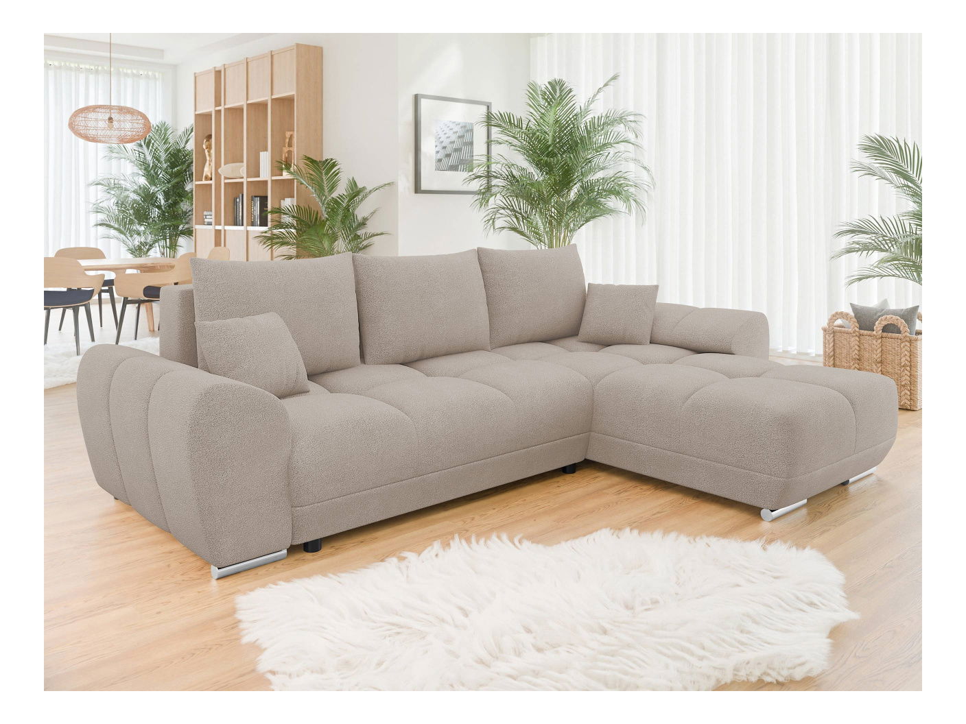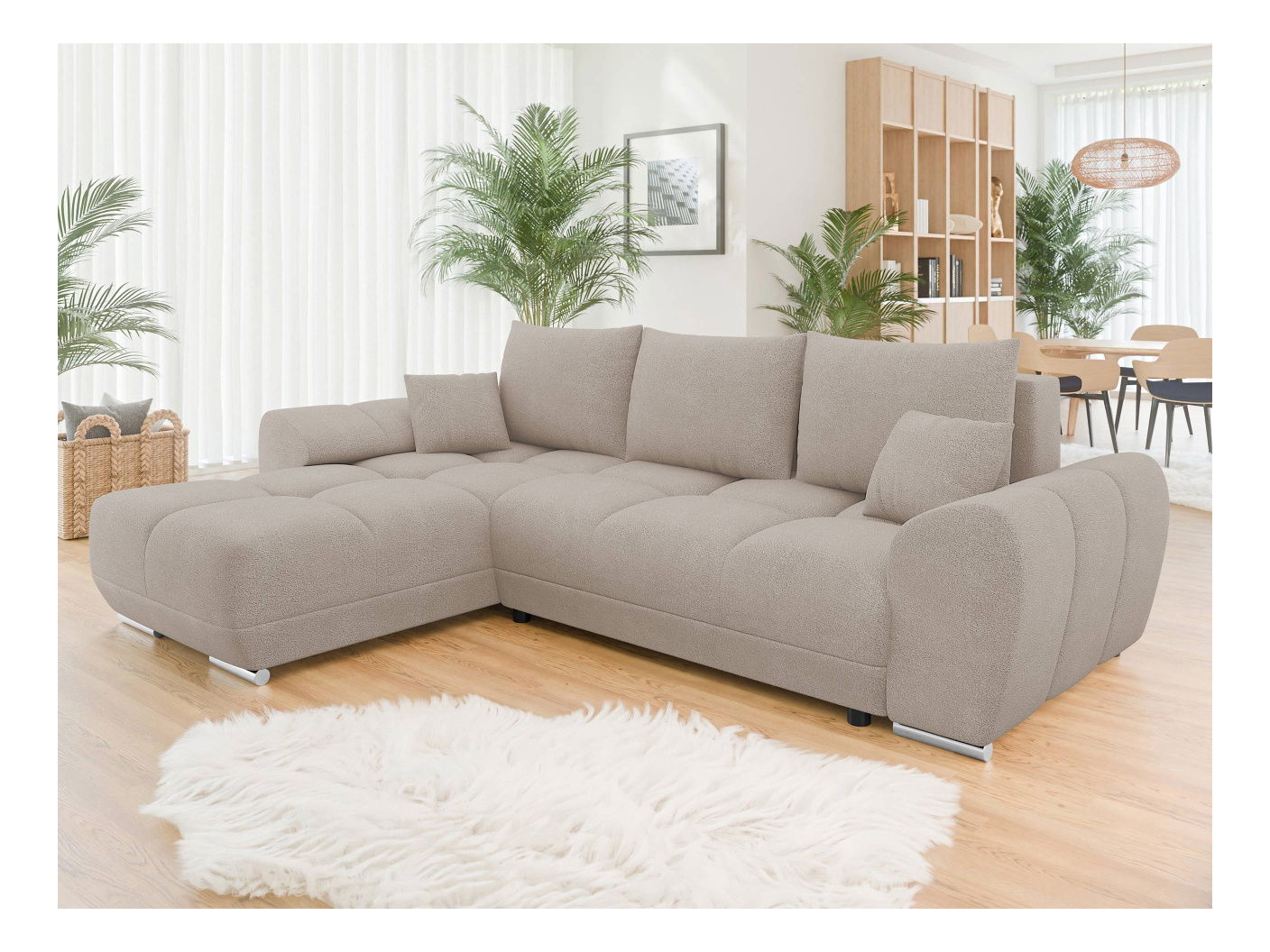 ZobrazitRohová sedačka je ideální volbou pro ty, kdo hledají pohodlí a styl. Moderní rohová sedací souprava Bordia ve tvaru písmene L je dokonalým nábytkem do rodinného obývacího pokoje. Prostorná sedačka doplněná lenoškou nabízí místo k sezení i relax v polo-lehu. Při čtení knihy, sledování televizních seriálů nebo prohlížení oblíbených webových stránek si zde můžete odpočinout zabalení v látce příjemné na dotek. Stylovou rohovou sedačku s funkcí na spaní lze také rozložit. Posunutím sedačky dopředu odkryjeme i nádobu na podestýlku. Tato diskrétní přihrádka je ideální pro uložení ložního prádla, teplých přikrývek nebo sezónního oblečení. Rozměry: délka: 291 cm, šířka: 183 cm, výška: 85 cm, Spací plocha: 220 x 130 cm, rozměry kontejneru: délka: 147 cm, šířka: 60 cm, výška: 24 cm Rohová strana: univerzální (stranu si volí zákazník při montáži) Provedení: rám: sedák a opěradlo: 8 cm silná pěna T28 + vlnová pružina, rohová pohovka je rozkládací, automatický rozkládací stroj typu DL, má funkci spánku, úložný prostor, plastové nohy, opěradlo ve formě pohyblivých polštářů plněných pěnovými granulemi, polštáře se zapínají na zip, polštáře v ceně, volný látkou) Záruka: 24 měsíců