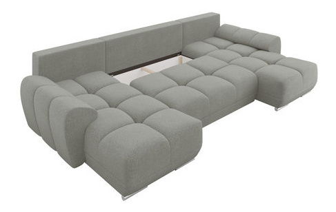 ZobrazitRohová sedačka je ideální volbou pro ty, kdo hledají pohodlí a styl. Rodinná rohová sedačka ve tvaru U Bordia poskytuje komfortní podmínky pro společný relax. Prostorná sedadla nabízejí pohodlné místo pro sledování filmů a prohlížení oblíbených webových stránek. Když se na nich pohodlně usadíte, můžete si podepřít i záda – pohodlí jim zajistí atraktivní polštáře. Rozkládací rohová sedačka má také funkci na spaní. Prodloužením střední části pohovky získáme prostornou plochu na spaní. Je to skvělá volba jak pro každodenní spaní, tak pro příležitostné noční hosty. Další výhodou je prostorný úložný prostor. Vejde se do ní přikrývka, polštáře a dostatek místa například i na náhradní přikrývku. Rozměry: délka: 362 cm, šířka: 183 cm, výška: 85 cm, plocha na spaní: 310 x 130 cm, rozměry úložného prostoru: délka: 147 cm, šířka: 60 cm, výška: 24 cm Rohová strana: symetrická Provedení: rám: borové dřevo 8 cm silná pěna T28 + vlnová pružina, rohová sedačka je rozkládací, automatický rozkládací stroj typu DL, má funkci spánku, úložný prostor, plastové nohy, opěradlo ve formě pohyblivých polštářů plněných pěnovými granulemi, polštáře se zapínají na zip, polštáře v ceně, volně stojící rohová 24 měsíců