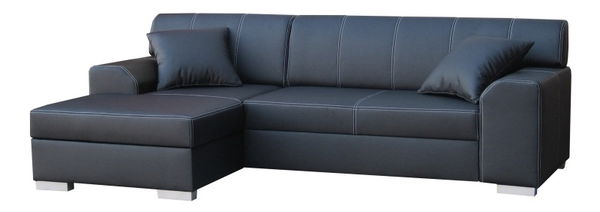 Krásná designová rohová sedačka v provedení levý roh s výrazným svislým prošíváním dodávajícím dominantní ucelený tvar. Sedačka je rozkládací a úložný prostor se nachází v rozkládacím rohu, po rozložení se vytvoří rozměrná plocha na spaní o rozměru 268 cm délka a 132 cm šířka. Sedák je vyroben z pružiny, čímž je zaručen komfort měkkého sezení a tvarová trvanlivost sedačky. Výška sezení je 43 cm a hloubka sezení je 67 cm a sedačka stojí na šedých nožkách. Provedení je koženka černá - Madryt 1100.