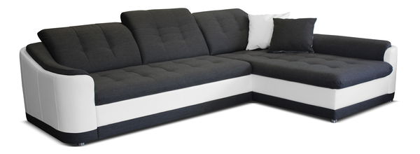 Pohodlná a designově zajímavá rohová sedací souprava, která je potažená koženkou a látkou. Její design dotvářejí zaoblené prvky a prošívání na sedací a opěradlové části. Opěrky sedací soupravy jsou polohovatelné a dají se nastavit podle potřeby. Pohodlí zajišťuje i možnost sedačku rozložit a vytvořit praktickou plochu na spaní. Pravé provedení sedací soupravy.