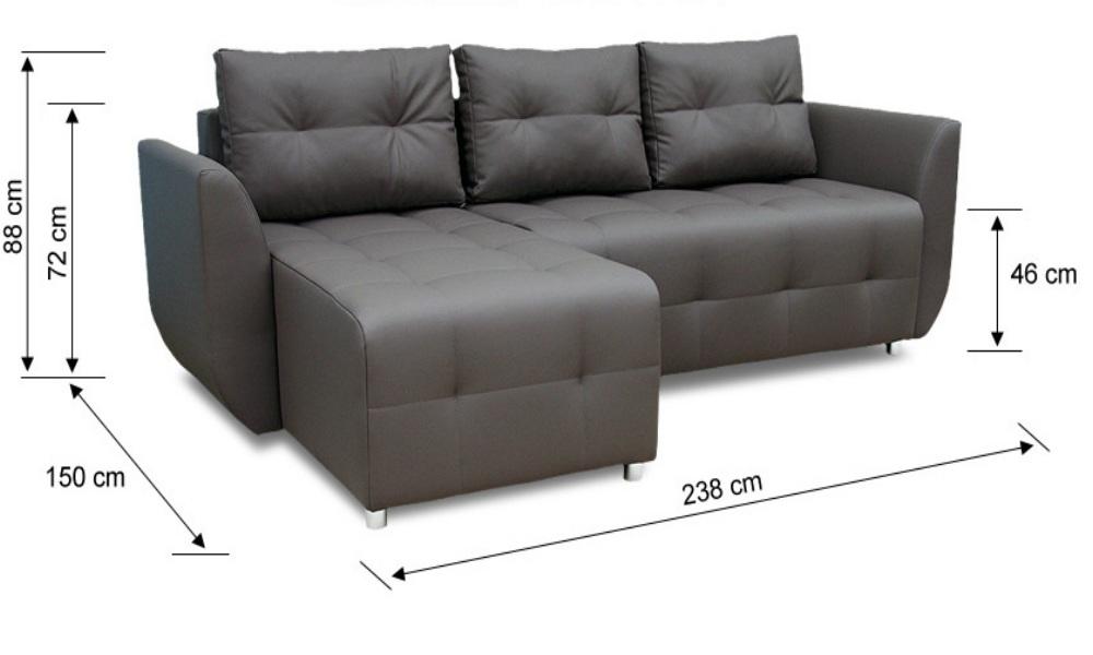 Rohová sedačka z ekokože má univerzální roh, což znamená, že se dostanou do pravého i levého rohu. Moderní a vkusná sedačka je vhodná i pro příležitostné spaní. Po rozložení získají spací boty velikost 200 x 127 cm. Sedačka má také úložný prostor například na posteli.