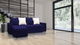 Rohová sedací souprava Briston s opěrkami (modrá + polštáře)