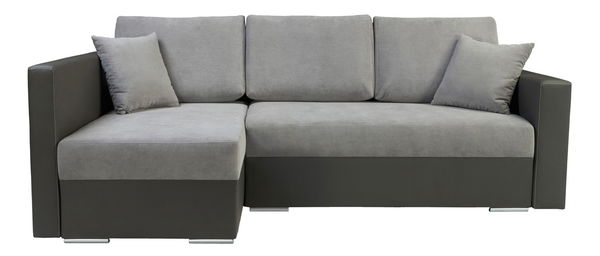 S touto rohovou sedací soupravou moderního designu si naplno vychutnáte chvíle oddechu při sledování televize, čtení oblíbené knihy nebo rozhovoru s přáteli. Sedacé souprava má sedací část a polštáře čalouněné látkou. Opěrky rukou, boky a přední část je čalouněná ekokůží. Sedací soupravu umíte v případě potřeby rozložit, čímž se vám vytvoří plocha na příležitostné spaní. Sedací souprava má úložný prostor, do kterého si umíte uložit ložní prádlo, či jiné doplňky. Sedací souprava stojí na širších plastových pochromovaných nohou. Levé provedení rohu.