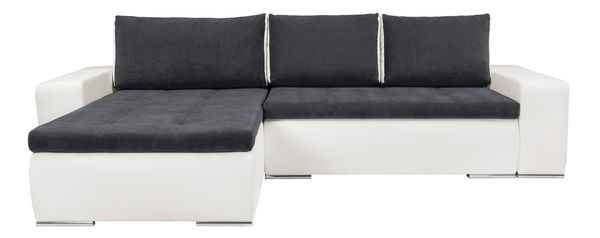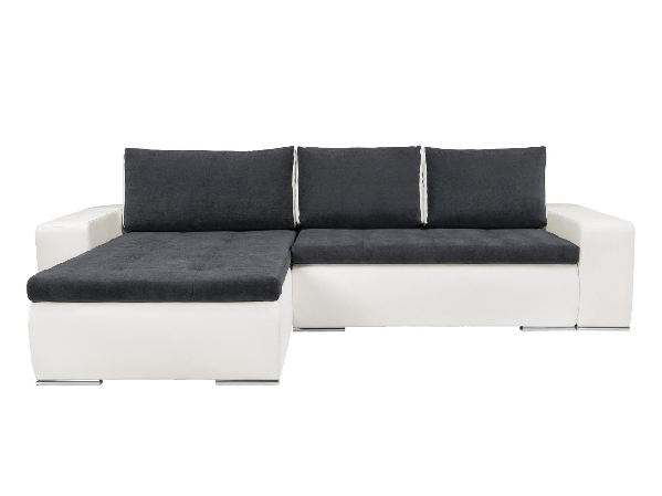 Krásná rohová sedací souprava, která je čalouněná látkou a i ekokůží. Poskytne vám dostatek pohodlí během volných chvil odpočinku. Opěradlo je složeno z trochu polštářů. Sedací soupravu umte rozložit a získat tak prostor na přespání pro sebe, či vašich známých. Úložný prostor sedací soupravy využijete pro uložení ložního prádla nebo jiných doplňků. Sedací souprava stojí na plastových nohách v chromové barvě. Levé provedení rohu.