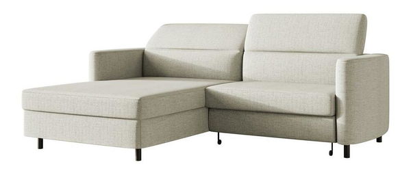 Hledáte módní a funkční nábytek do obývacího pokoje? Rozkládací rohová sedačka bude skvělou volbou Rohová sedačka má tvar s moderním tvarem, který skvěle poslouží v každém moderním aranžmá. Tělo je namontováno na štíhlých kvých nohách, které konstrukci poskytují stabilní oporu. Sedák je vyplněn polyuretanovou pěnou a vlnovými pružinami typu B – díky tomu je nábytek pružný a rychle se vrací do původního tvaru, aniž by byl plný nevzhledných prohlubní. disponuje funkcí spánku a mechanismem usnadňujícím rozkládání typu DL, což vám umožní rychle přeměnit rohovou pohovku na pohodlnou postel s velkou plochou. Pod sedadlem je prostorná odkládací přihrádka na lůžkoviny, kam pohodlně uložíte všechny potřebné textilie Detaily produktu: rohová sedačka je levá, hloubka loketní opěrky: 85 cm, nastavení opěrky hlavy umožňuje přizpůsobit její sklon. potřeby, hustota pěny v sedáku: 30/25, hustota pěny na základě: 30/25 čalouněná zadní část nábytku vám umožní umístit jej kdekoli v obýváku, ne nutně ke zdi, nábytek pro svépomocnou montáž, nábytek čalouněná látkou Moly 02 v krémové barvě Moly je odolná, odolná látka, která je mimořádně jemná na dotek. Vyrobeno z žinylkové látky, má jemný a jemný vzor s elegantní vazbou, kterou lze nahmatat prsty. Tato látka spojuje originální design s praktickým využitím. Pokryté speciální hydrofobní vrstvou Water Repellent chrání před rychlou absorpcí tekutin. To znamená, že tekutiny neproniknou okamžitě do struktury látky, ale zůstanou na jejím povrchu.