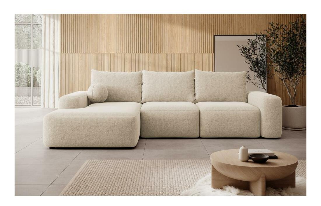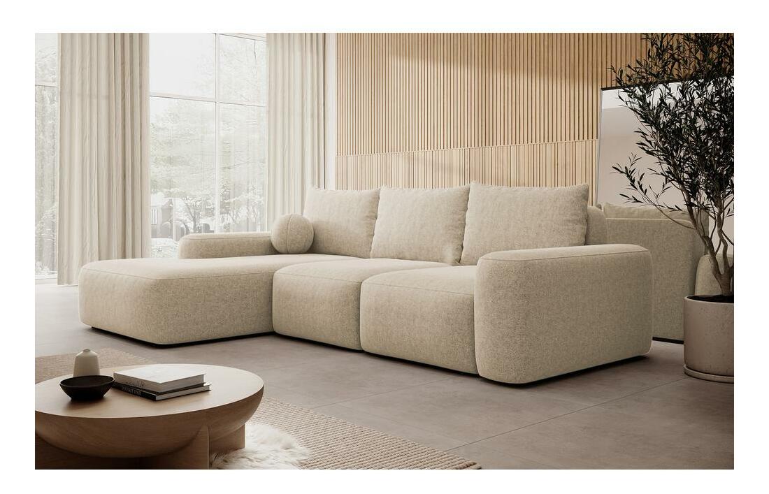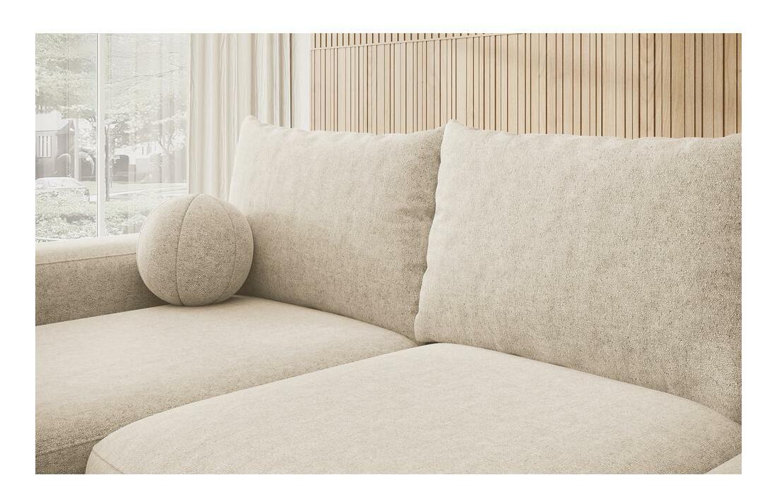 ZobrazitUž vás omrzel masivní, těžký nábytek? Potom Rohová sedačka s funkcí na spaní se ukáže jako hit Rohová sedačka s funkcí na spaní je kombinací harmonických zaoblených tvarů s minimalistickým designem a vytváří kus nábytku s mimořádně moderním výrazem. , vyroben z kvalitní žinylkové látky, vyzařuje eleganci a pohodlí. Souprava obsahuje vkusné polštáře na opěradlo a jeden nevšední v podobě koule, které dodávají celé rohové sedačce jedinečný vzhled. není jen styl a estetika, je to také funkčnost přizpůsobená potřebám každodenního života. Rohová pohovka, vybavená mechanismem DL, se snadno změní na pohodlné místo na spaní. Pohodlí sedáku je zdůrazněno použitím vlnových pružin typu B v sedáku, které zajišťují vynikající oporu a rovnoměrné rozložení hmotnosti těla. Rohová pohovka je ideální volbou pro ty, kteří oceňují estetiku i funkčnost ve svém okolí. Přidejte se k revoluci v pohodlném relaxu!Vyberte si rohovou pohovku a objevte nový rozměr relaxu ve svém interiéru!Hledáte něco menšího?Nezapomeňte si prohlédnout naši pohovku ze stejné kolekce !Produkt detaily: rohová sedačka ve tvaru L, nábytek levý, volně stojící model, tj. s čalouněným opěradlem, funkce spánku typu DL umožňuje velmi rychlé rozložení rohové sedačky, standardně praktický kontejner na lůžkoviny, vlnité pružiny typu B v sedáku, v ceně dekorační polštář v podobě míčku, nábytek čalouněný látkou Melody 13 v béžové barvě, Melody je hustá odolná látka tkaná v ženilkm stylu s čirými uzly připomínajícími ladnou ovčí vlnu. Jemnost a okouzlující dotek této látky nabízí neuvěřitelný pocit pohodlí. Neuvěřitelná gramáž 480 g/m2 poskytuje komfort, který se mezi jinými látkami jen obtížně hledá.