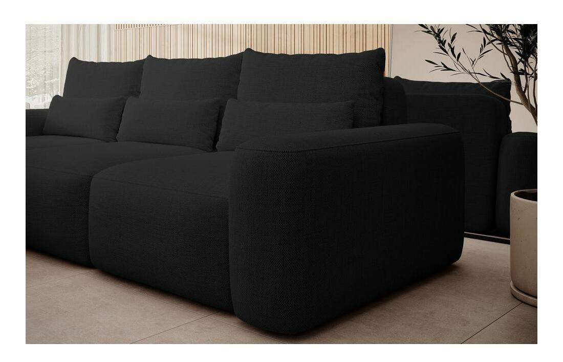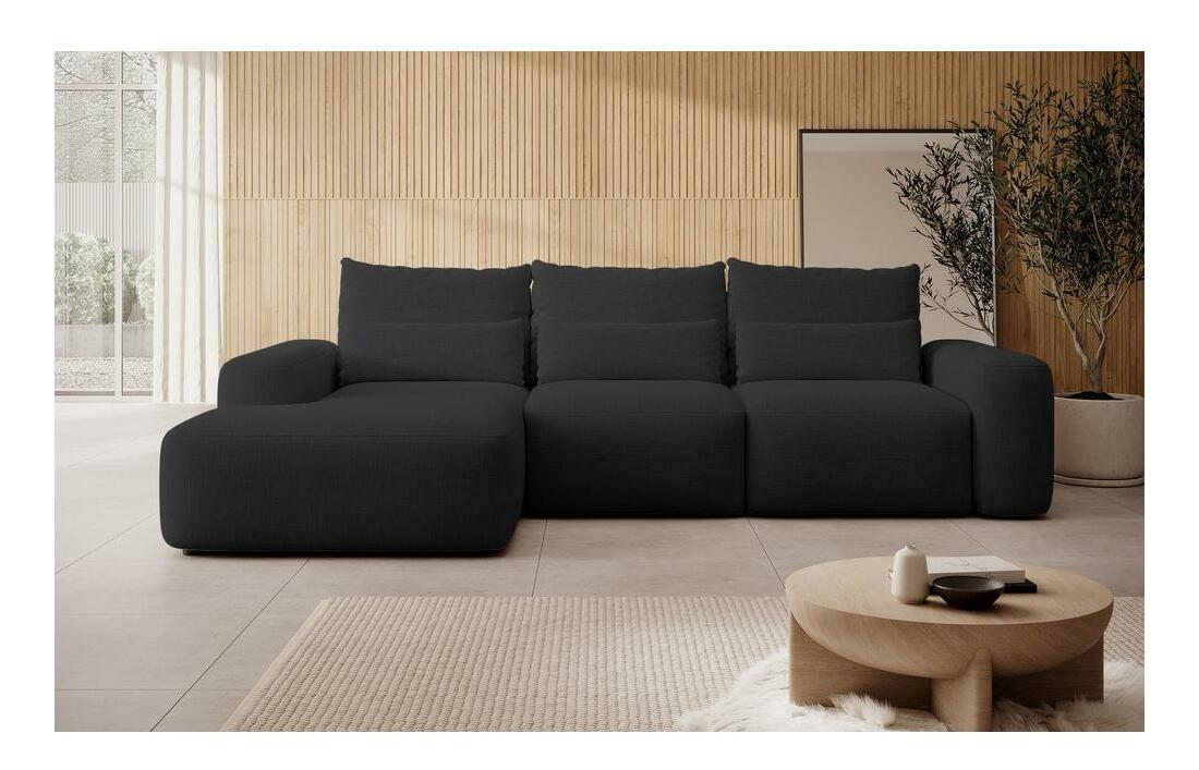 ZobrazitHledáte moderní salonkový nábytek do vašeho obývacího pokoje, kde si po náročném dni pohodlně odpočinete? Rohová sedačka s funkcí na spaní bude vynikající volbou Rohová sedačka s funkcí na spaní je kombinací harmonických zaoblených tvarů s minimalistickou strukturou a vytváří tak kus nábytku s mimořádně moderním výrazem. , vyrobený z vysoce kvalitní žinylkové tkaniny, vyzařuje eleganci a pohodlí. Souprava obsahuje vkusné bederní polštáře, které celou rohovou sedačku extra zútulní. není jen styl a estetika, je to také funkčnost přizpůsobená potřebám každodenního života. Rohová pohovka vybavená mechanismem DL se snadno změní na pohodlné místo na spaní. navíc obsahuje praktický zásobník na ložní prádlo, který vám umožní udržovat pořádek v místnosti. Pohodlí sedadla je zdůrazněno použitím vlnových pružin typu B v sedadle, které poskytují vynikající oporu a rovnoměrné rozložení hmotnosti těla. Rohová pohovka je ideální volbou pro ty, kteří oceňují estetiku i funkčnost ve svém okolí. Přidejte se k revoluci v pohodlném relaxu! Vyberte si rohovou sedačku a objevte ve svém interiéru nový rozměr relaxu! Hledáte něco menšího? Určitě si prohlédněte naši pohovku ze stejné kolekce Podrobnosti o produktu: Rohová pohovka ve tvaru L, nábytek pro leváky, volně stojící model, tj. s čalouněným opěradlem, funkce na spaní typu DL umožňuje rohovou pohovku velmi rozložit! rychle, standardně praktický kontejner na ložní prádlo, vlnité pružiny B v sedadle, tři bederní polštáře jsou součástí rohové sedačky, nábytek je čalouněný látkou Moly 99 v černé barvě, Moly je odolná, odolná látka, která je výjimečně měkká dotek. Vyrobeno z žinylkové látky, má jemný a jemný vzor s elegantní vazbou, kterou lze nahmatat prsty. Tato látka spojuje originální design s praktickým využitím. Pokryté speciální hydrofobní vrstvou Water Repellent chrání před rychlou absorpcí tekutin. To znamená, že tekutiny neproniknou okamžitě do struktury látky, ale zůstanou na jejím povrchu.