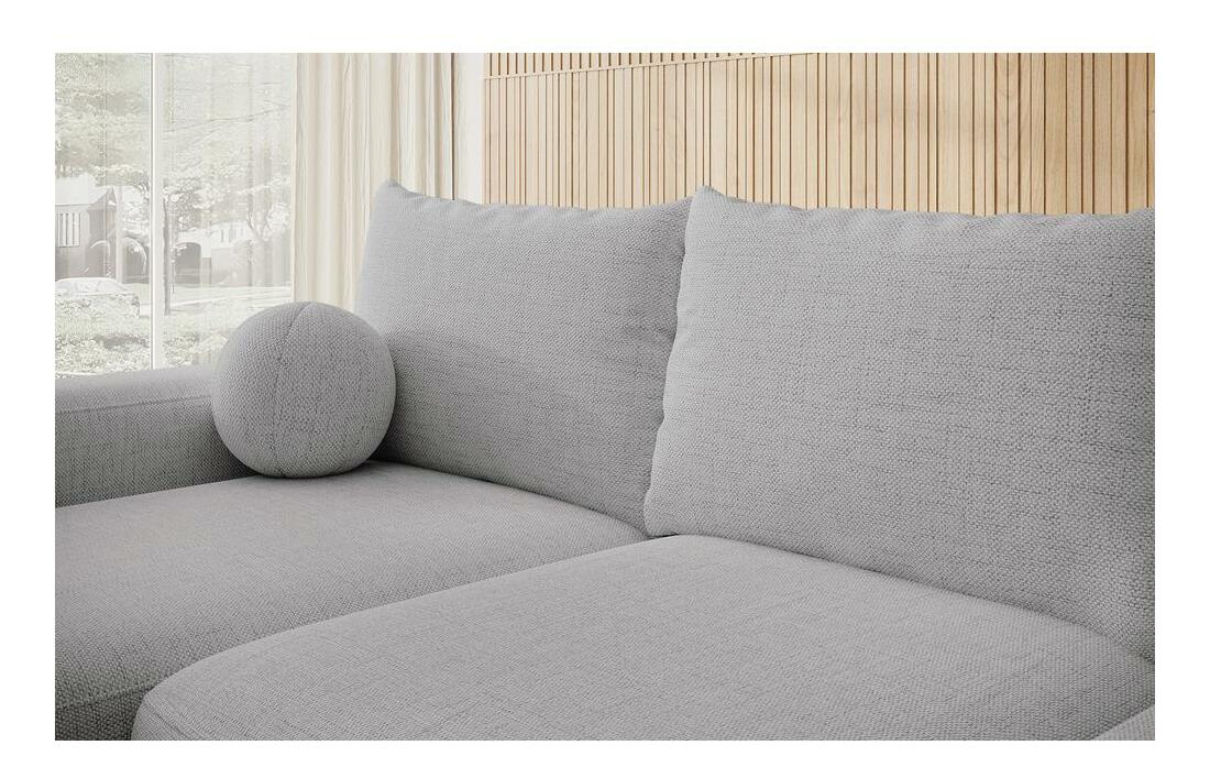 ZobrazitUž vás omrzel masivní, těžký nábytek? Potom Rohová sedačka s funkcí na spaní se ukáže jako hit Rohová sedačka s funkcí na spaní je kombinací harmonických zaoblených tvarů s minimalistickým designem a vytváří kus nábytku s mimořádně moderním výrazem. , vyroben z kvalitní žinylkové látky, vyzařuje eleganci a pohodlí. Souprava obsahuje vkusné polštáře na opěradlo a jeden nevšední v podobě koule, které dodávají celé rohové sedačce jedinečný vzhled. není jen styl a estetika, je to také funkčnost přizpůsobená potřebám každodenního života. Rohová pohovka, vybavená mechanismem DL, se snadno změní na pohodlné místo na spaní. Pohodlí sedáku je zdůrazněno použitím vlnových pružin typu B v sedáku, které zajišťují vynikající oporu a rovnoměrné rozložení hmotnosti těla. Rohová pohovka je ideální volbou pro ty, kteří oceňují estetiku i funkčnost ve svém okolí. Přidejte se k revoluci v pohodlném relaxu!Vyberte si rohovou pohovku a objevte nový rozměr relaxu ve svém interiéru!Hledáte něco menšího?Nezapomeňte si prohlédnout naši pohovku ze stejné kolekce !Produkt detaily: rohová sedačka ve tvaru L, nábytek levý, volně stojící model, tj. s čalouněným opěradlem, funkce spánku typu DL umožňuje velmi rychlé rozložení rohové sedačky, standardně praktický kontejner na lůžkoviny, vlnité pružiny typu B v sedáku, dekorační polštář v podobě míče v ceně, nábytek čalouněný látkou Moly 80 v šedé barvě, Moly je odolná, odolná látka, která je výjimečně jemná na dotek. Vyrobeno z žinylkové látky, má jemný a jemný vzor s elegantní vazbou, kterou lze nahmatat prsty. Tato látka spojuje originální design s praktickým využitím. Pokryté speciální hydrofobní vrstvou Water Repellent chrání před rychlou absorpcí tekutin. To znamená, že tekutiny neproniknou okamžitě do struktury látky, ale zůstanou na jejím povrchu.