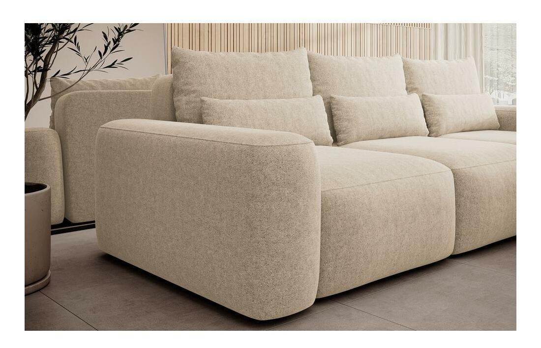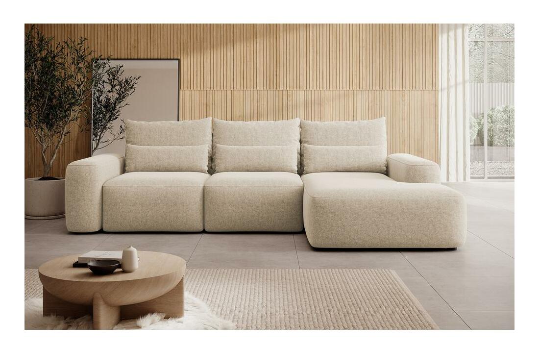 ZobrazitHledáte moderní salonkový nábytek do vašeho obývacího pokoje, kde si po náročném dni pohodlně odpočinete? Rohová sedačka s funkcí spánku bude vynikající volbou Rohová sedačka s funkcí spánku je spojením harmonických zaoblených tvarů s minimalistickým designem a vytváří kus nábytku s mimořádně moderním výrazem. , vyrobený z vysoce kvalitní žinylkové tkaniny, vyzařuje eleganci a pohodlí. Souprava obsahuje vkusné bederní polštáře, které celou rohovou sedačku extra zútulní. není jen styl a estetika, je to také funkčnost přizpůsobená potřebám každodenního života. Rohová pohovka vybavená mechanismem DL se snadno změní na pohodlné místo na spaní. navíc obsahuje praktický zásobník na ložní prádlo, který vám umožní udržovat pořádek v místnosti. Pohodlí sedáku je zdůrazněno použitím vlnových pružin typu B v sedáku, které zajišťují vynikající oporu a rovnoměrné rozložení hmotnosti těla. Rohová pohovka je ideální volbou pro ty, kteří oceňují estetiku i funkčnost ve svém okolí. Přidejte se k revoluci v pohodlném relaxu!Vyberte si rohovou pohovku a objevte nový rozměr relaxu ve svém interiéru!Hledáte něco menšího?Nezapomeňte si prohlédnout naši pohovku ze stejné kolekce !Produkt detaily: rohová sedačka ve tvaru L, nábytek pro pravou ruku, volně stojící model, tj. s čalouněným opěradlem, funkce na spaní typu DL umožňuje velmi rychlé rozložení rohové sedačky, standardně praktický kontejner na lůžkoviny, vlnové pružiny typu B v sedáku, tři bederní polštáře jsou součástí rohové sedačky, čalouněný nábytek látka Melody 13 v béžové barvě, Melody je hustá a odolná látka tkaná v ženilkm stylu s čirými uzly připomínajícími půvabnou ovčí vlnu. Jemnost a okouzlující dotek této látky nabízí neuvěřitelný pocit pohodlí. Neuvěřitelná gramáž 480 g/m2 poskytuje komfort, který se mezi jinými látkami jen obtížně hledá.