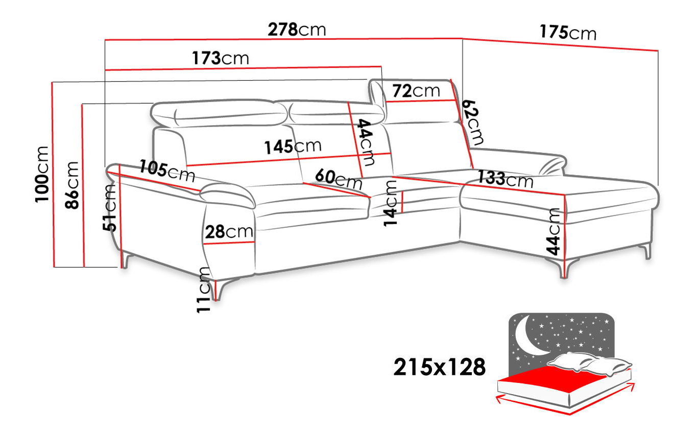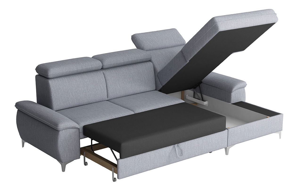 ZobrazitRohová sedačka je ideální volbou pro ty, kdo hledají pohodlí a styl. Moderní rohová sedačka Chester A je perfektní jako společník na odpoledne, filmovou noc se svými blízkými i během návštěv větší skupiny přátel. Optimální velikost nábytku vám umožní relaxovat po náročném dni a funkce spánku je spolehlivá jak na denní bázi, tak ve výjimečných situacích. Pro vaše pohodlí má rozkládací sedačka nastavitelné opěrky hlavy. Můžete snadno upravit jejich nastavení podle své postavy, což výrazně zvýší pohodlí odpočinku. Kromě toho pod podlouhlým gaučem je úložný prostor na ložní prádlo. rozměry: délka: 278 cm, šířka: 175 cm, výška: 86 - 100 cm, plocha na spaní: 215 x 128 cm Rohová strana: levá nebo pravá provedení: dřevěný rám + dřevotříska, sedák: T30 pěna + vlnitá pružina, opěradlo: pěna T2 rozkládací s funkcí spánku, úložný prostor na ložní prádlo, nastavitelné opěrky hlavy, pochromované nohy, čalouněné opěradlo pevně připevněné, sedačka není volně stojící model (záda není pokryta látkou) Záruka: 24 měsíců