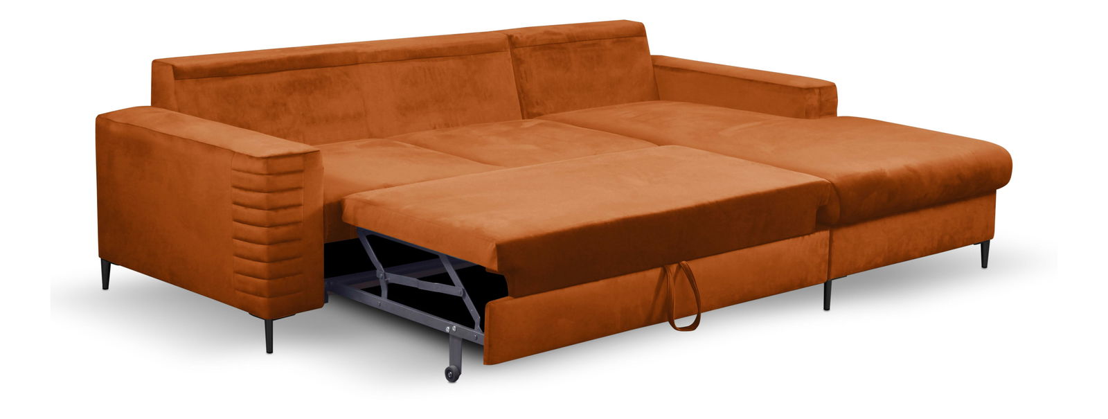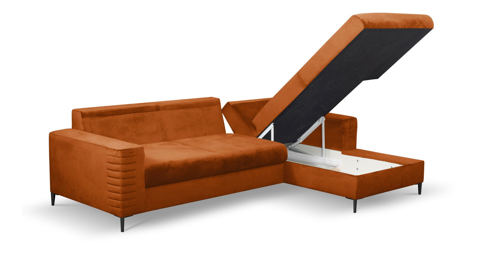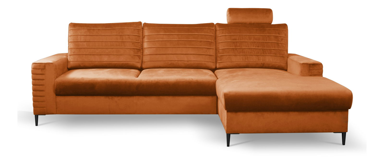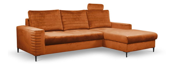 Rohová sedací souprava je vyrobena z kvalitní konstrukce ze dřeva a dřevotřísky, což zajišťuje pevnost a dlouhou životnost. Sedák je z PUR pěny a pružin, což poskytuje vynikající komfort při sezení. Souprava je rozkládací a nabízí plochu na spaní o rozměrech 140 x 212 cm, ideální pro hosty nebo příležitostné přespání. Výška sezení je 41 cm, hloubka sezení 52 cm a výška područky 55 cm, což přispívá k pohodlnému a ergonomickému sezení. Souprava má také úložný prostor, který poskytuje dostatek místa na uložení ložního prádla nebo jiných věcí. Hřbet je potažen stejnou látkou, což zaručuje jednotný vzhled. Nastavitelné opěrky hlavy přispívají k ještě většímu komfortu. Nožičky jsou kovové o výšce 10 cm, což dodává soupravě moderní vzhled a stabilitu. Typ rozkládání je vozík a tkanina Velluto, použitá pro čalounění, dodává soupravě elegantní a luxusní vzhled.