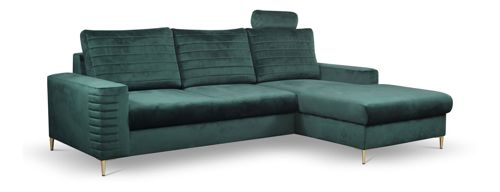 Rohová sedací souprava je vyrobena z kvalitní konstrukce ze dřeva a dřevotřísky, což zajišťuje pevnost a dlouhou životnost. Sedák je z PUR pěny a pružin, což poskytuje vynikající komfort při sezení. Souprava je rozkládací a nabízí plochu na spaní o rozměrech 140 x 212 cm, ideální pro hosty nebo příležitostné přespání. Výška sezení je 41 cm, hloubka sezení 52 cm a výška područky 55 cm, což přispívá k pohodlnému a ergonomickému sezení. Souprava má také úložný prostor, který poskytuje dostatek místa na uložení ložního prádla nebo jiných věcí. Hřbet je potažen stejnou látkou, což zaručuje jednotný vzhled. Nastavitelné opěrky hlavy přispívají k ještě většímu komfortu. Nožičky jsou kovové o výšce 10 cm, což dodává soupravě moderní vzhled a stabilitu. Typ rozkládání je vozík a tkanina Velluto, použitá pro čalounění, dodává soupravě elegantní a luxusní vzhled.